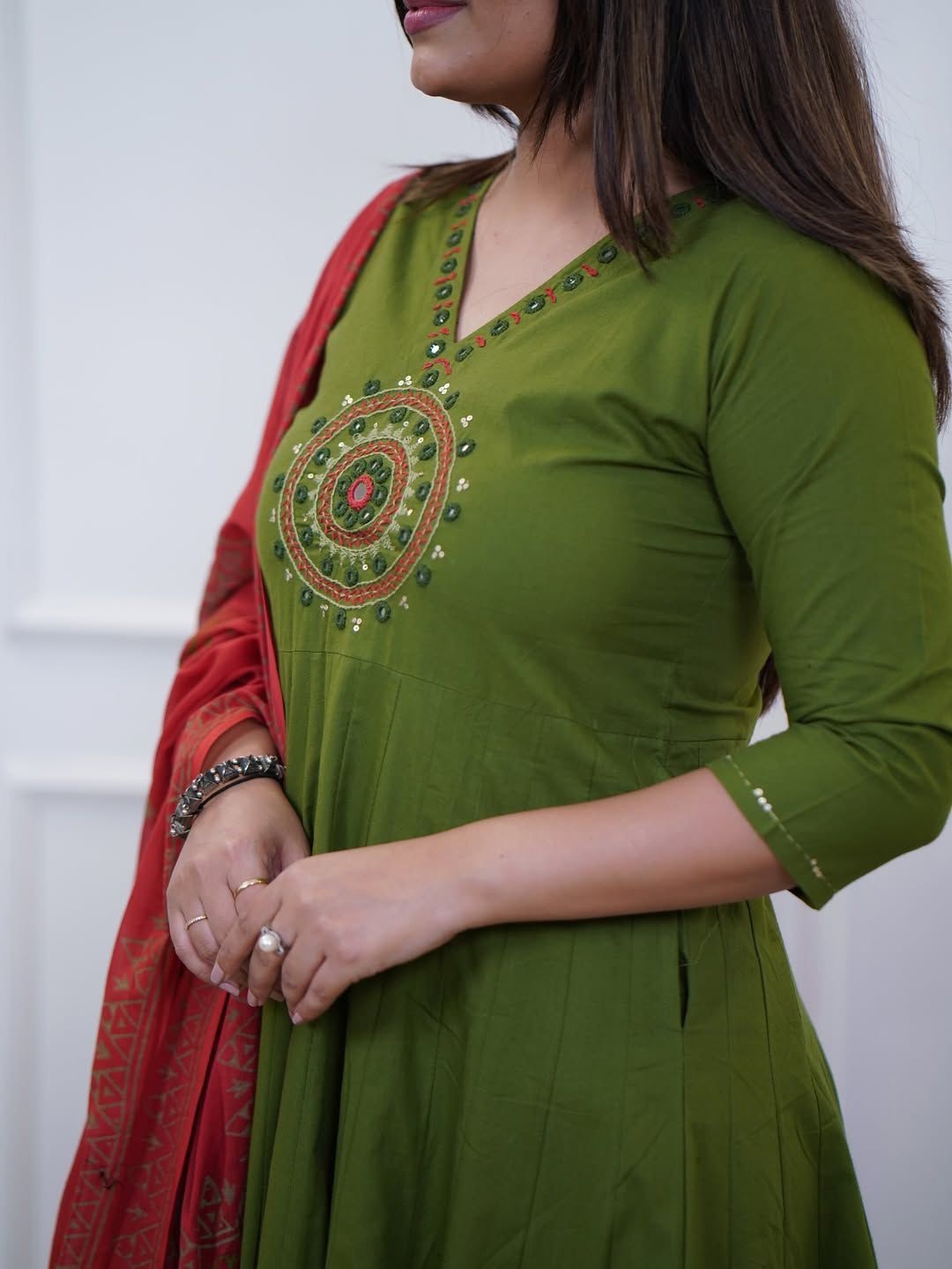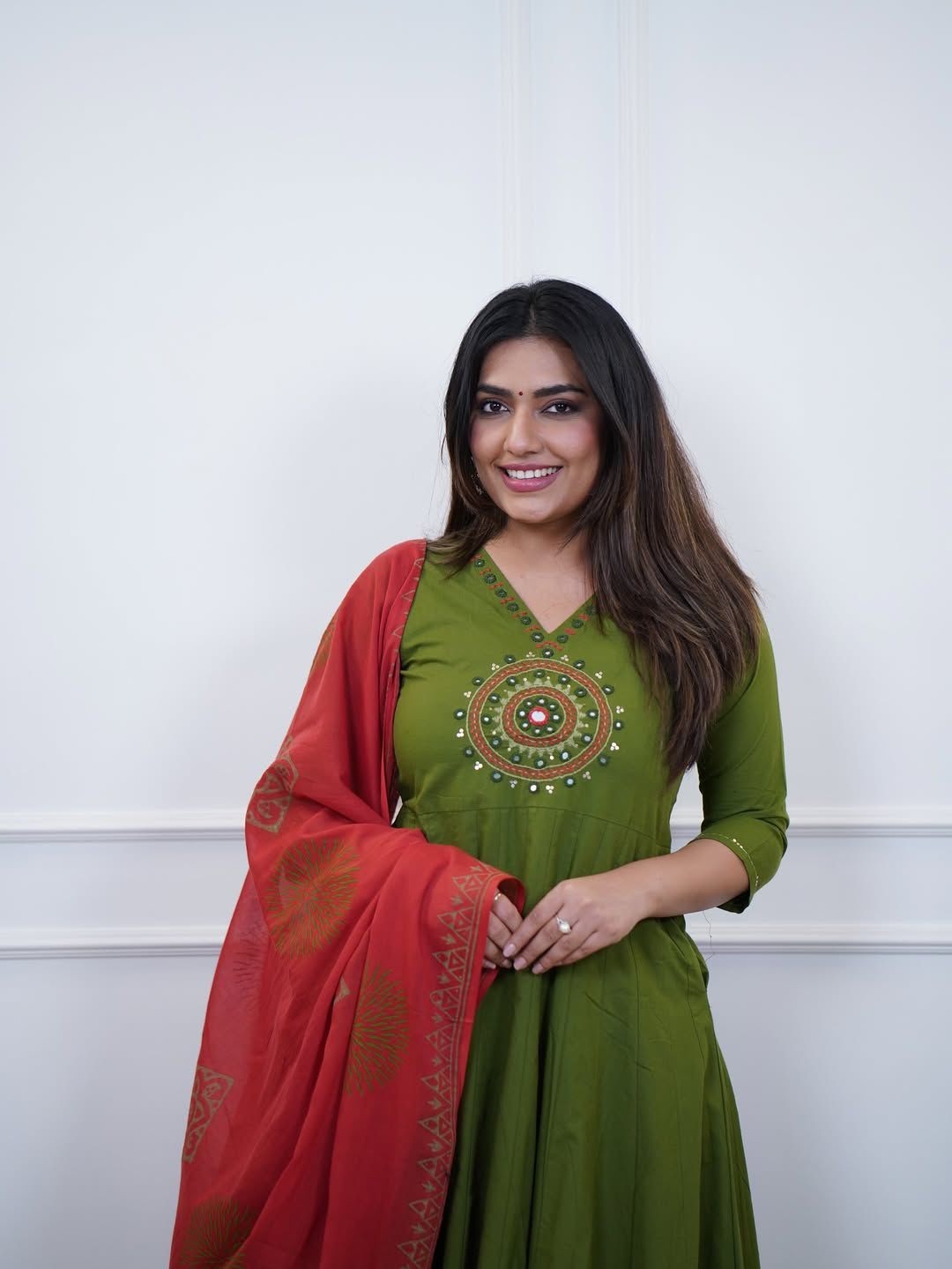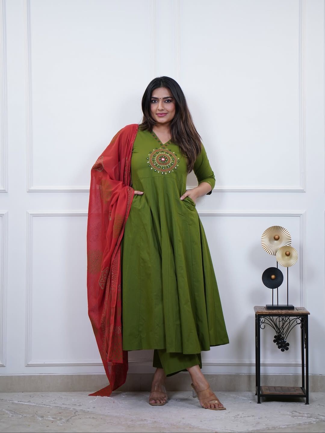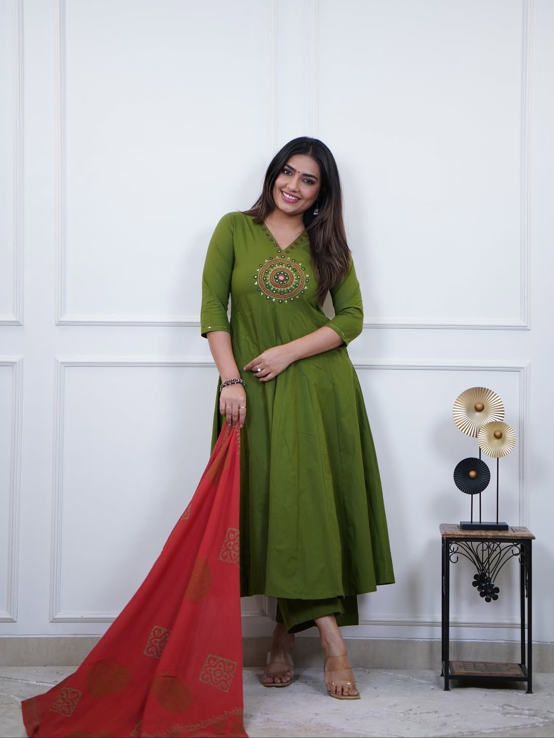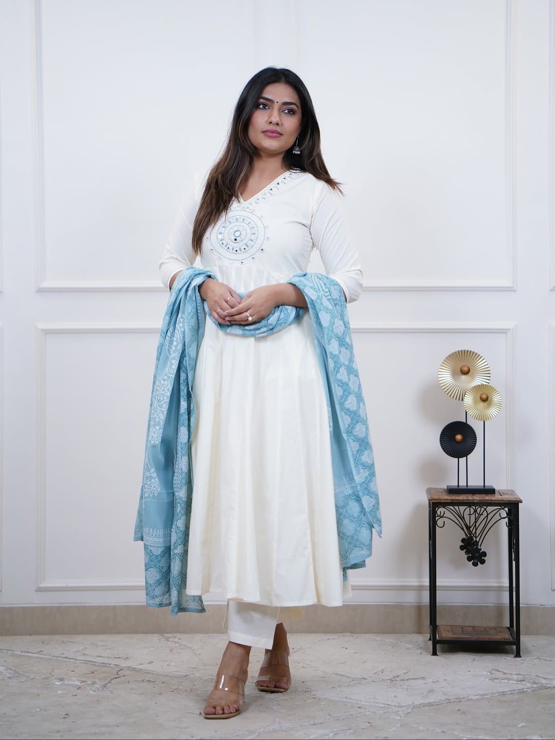 Indian Women Bollywood Kurta Pant Set Embroidered Suit with Printed Dupatta