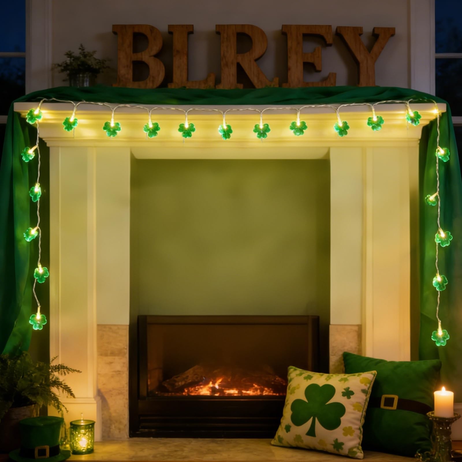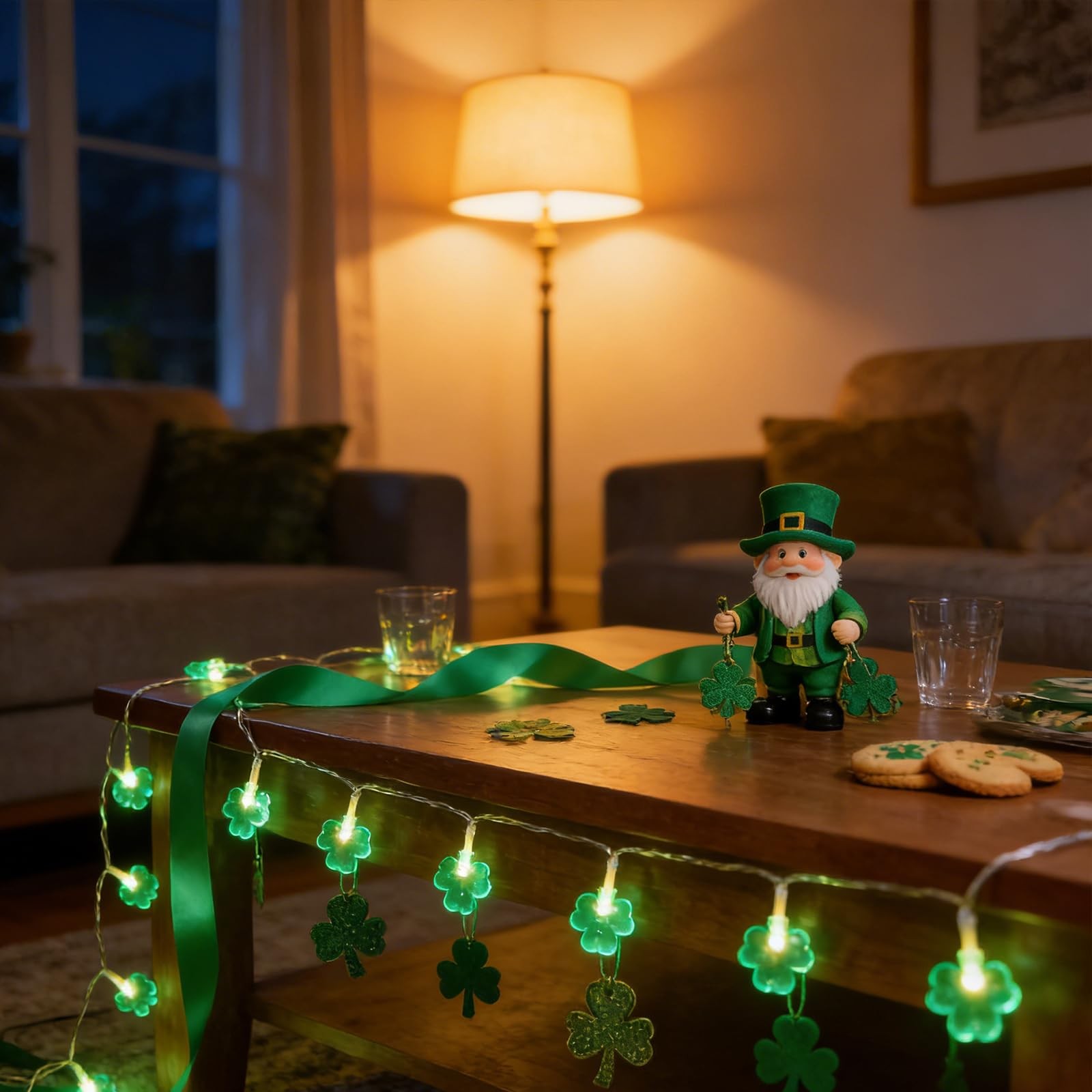 St Patricks Day String Lights Decorations,10FT 30 LED Green Shamrock st. Patrick