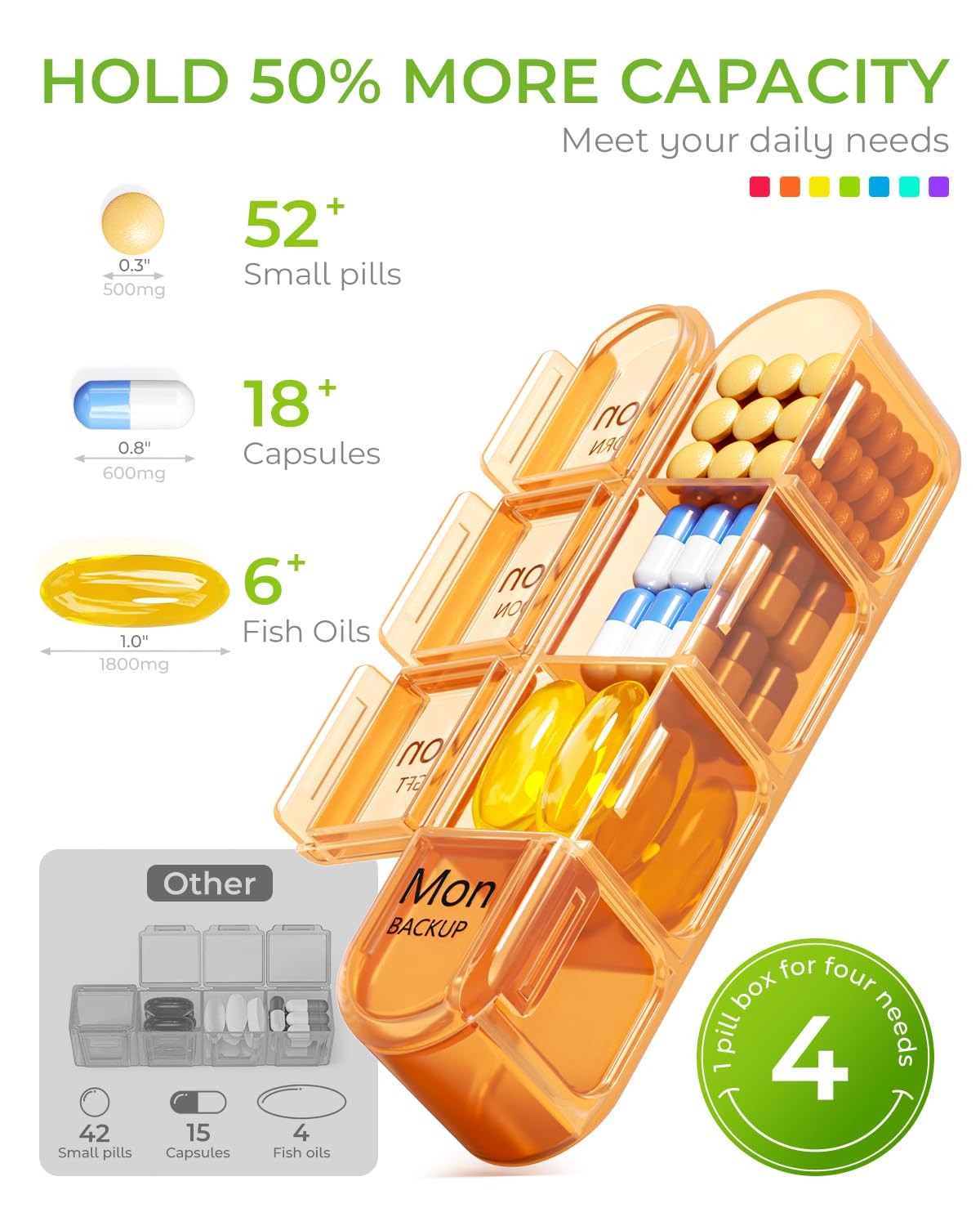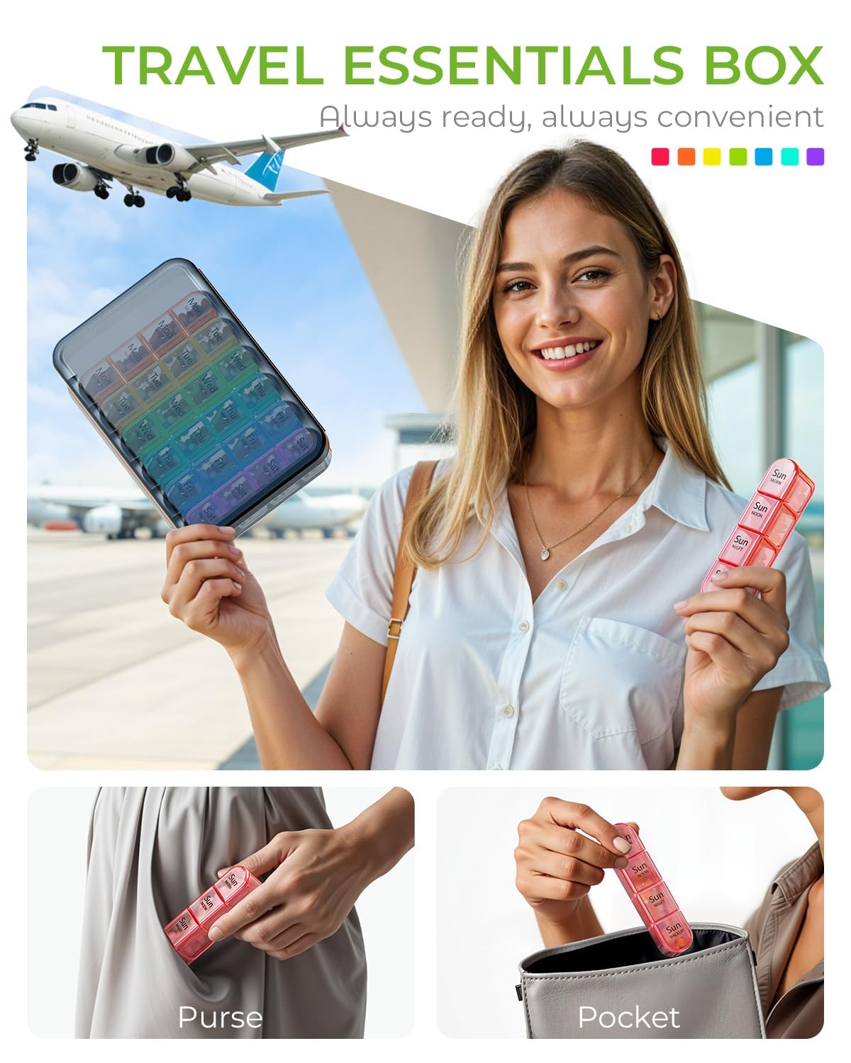 Weekly Pill Organizer 4 Times a Day, Large Medicine Organizer, Pill Box 7 Day