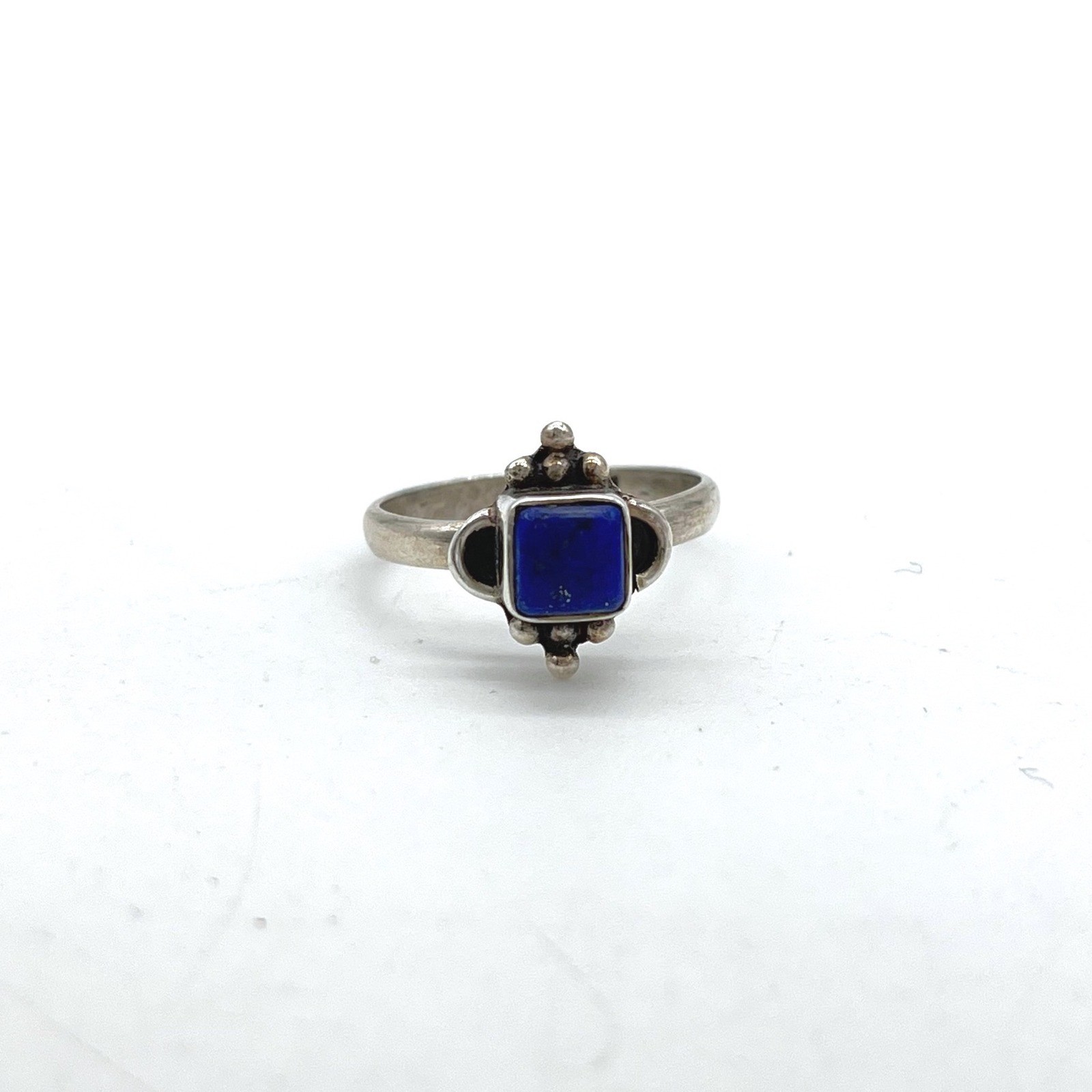 Vintage Sterling Silver 925 Square Lapis Lazuli Boho Ring Size 5.5 Blue Stone