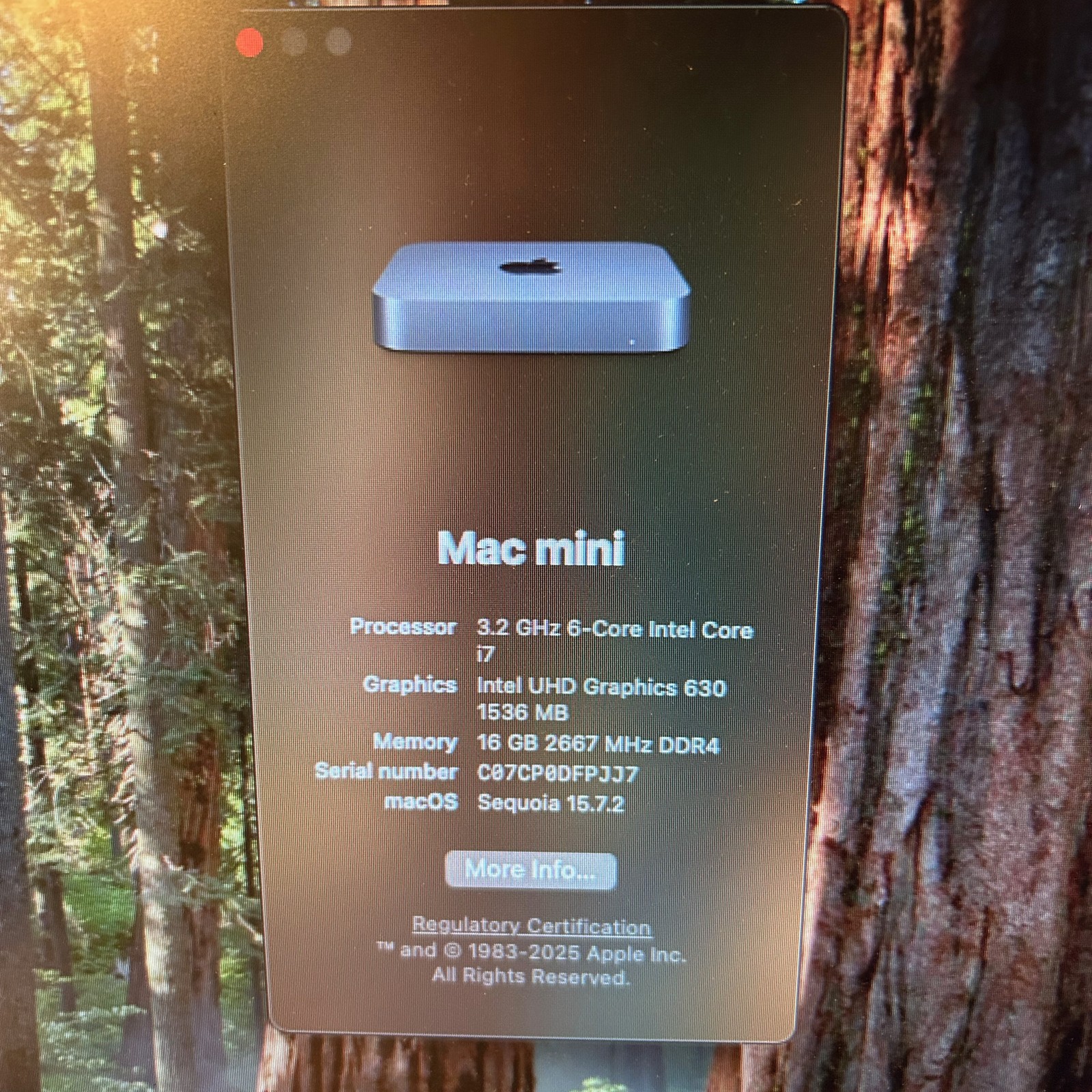 Apple Mac Mini 2018 A1993, 3.2GHz Intel 6 Core i7 16GB 251GB SSD, Sequoia