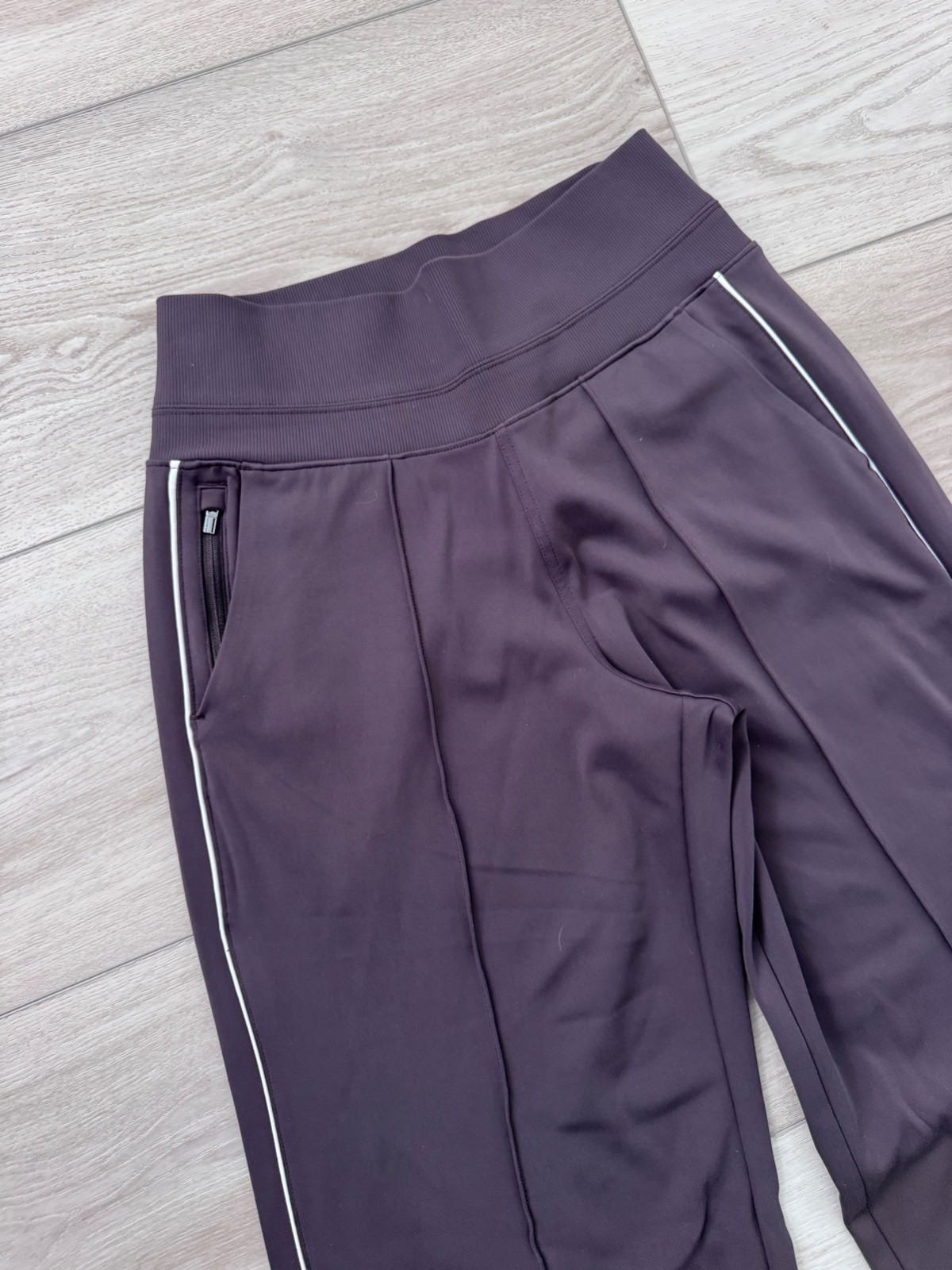 как выглядит Athleta SMALL Venice High Rise Track Stripe Wide Leg Pant Shale/White EUC фото