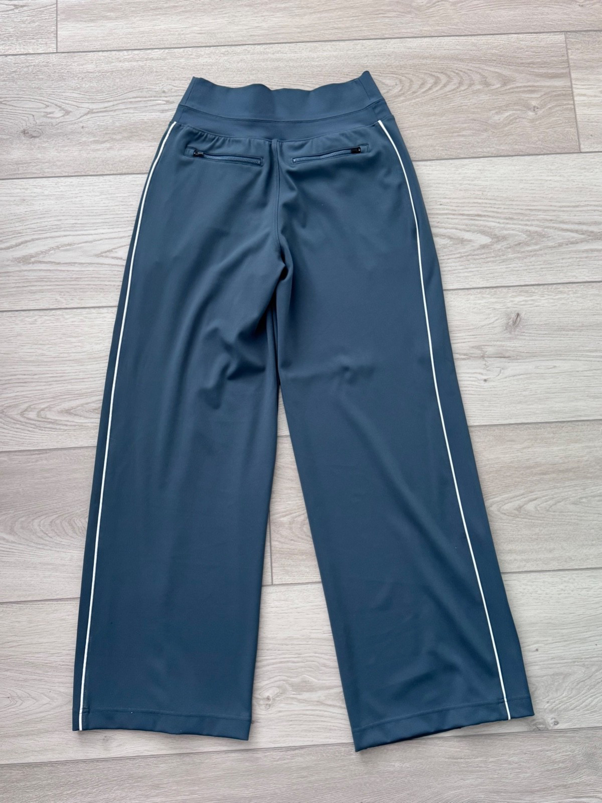 как выглядит Athleta SMALL Venice High Rise Track Stripe Wide Leg Pant Eden/White EUC фото