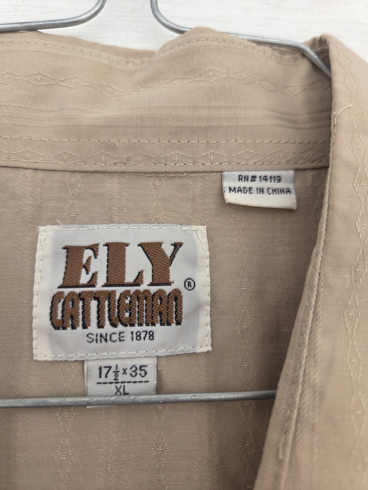 VTG Ely Cattleman Mens Tan Pearl Snap Western Shirt Tonal Stripe Long Sleeve XL