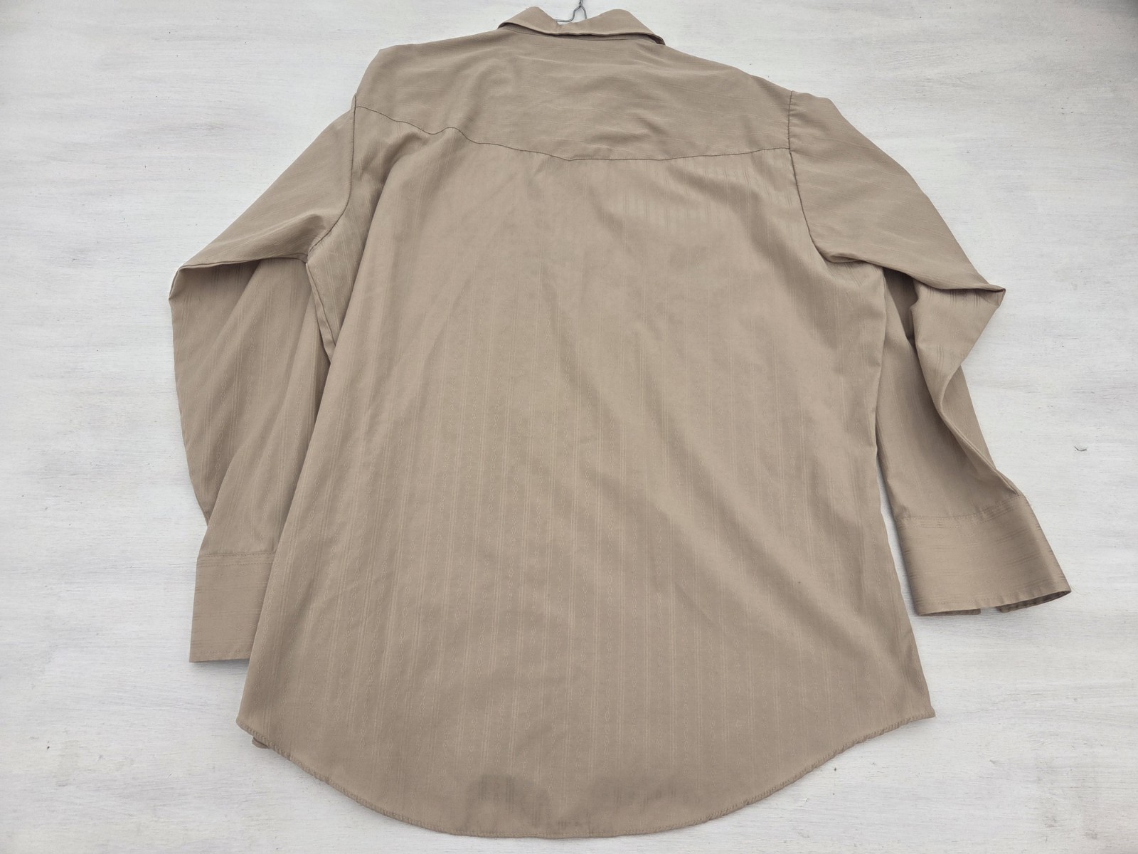 как выглядит VTG Ely Cattleman Mens Tan Pearl Snap Western Shirt Tonal Stripe Long Sleeve XL фото