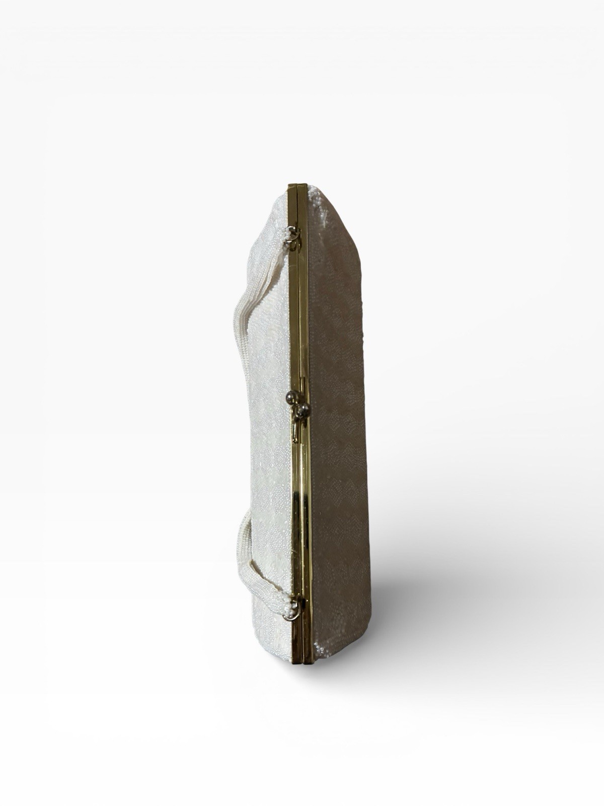 как выглядит White Beaded Evening Bag Bridal Handbag with Metallic Clasp and Fabric Exterior фото