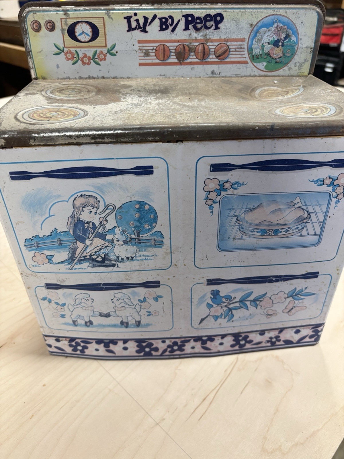 как выглядит Vintage Lil Bo Peep Tin Toy Kitchen Stove for Ages 3-7 фото