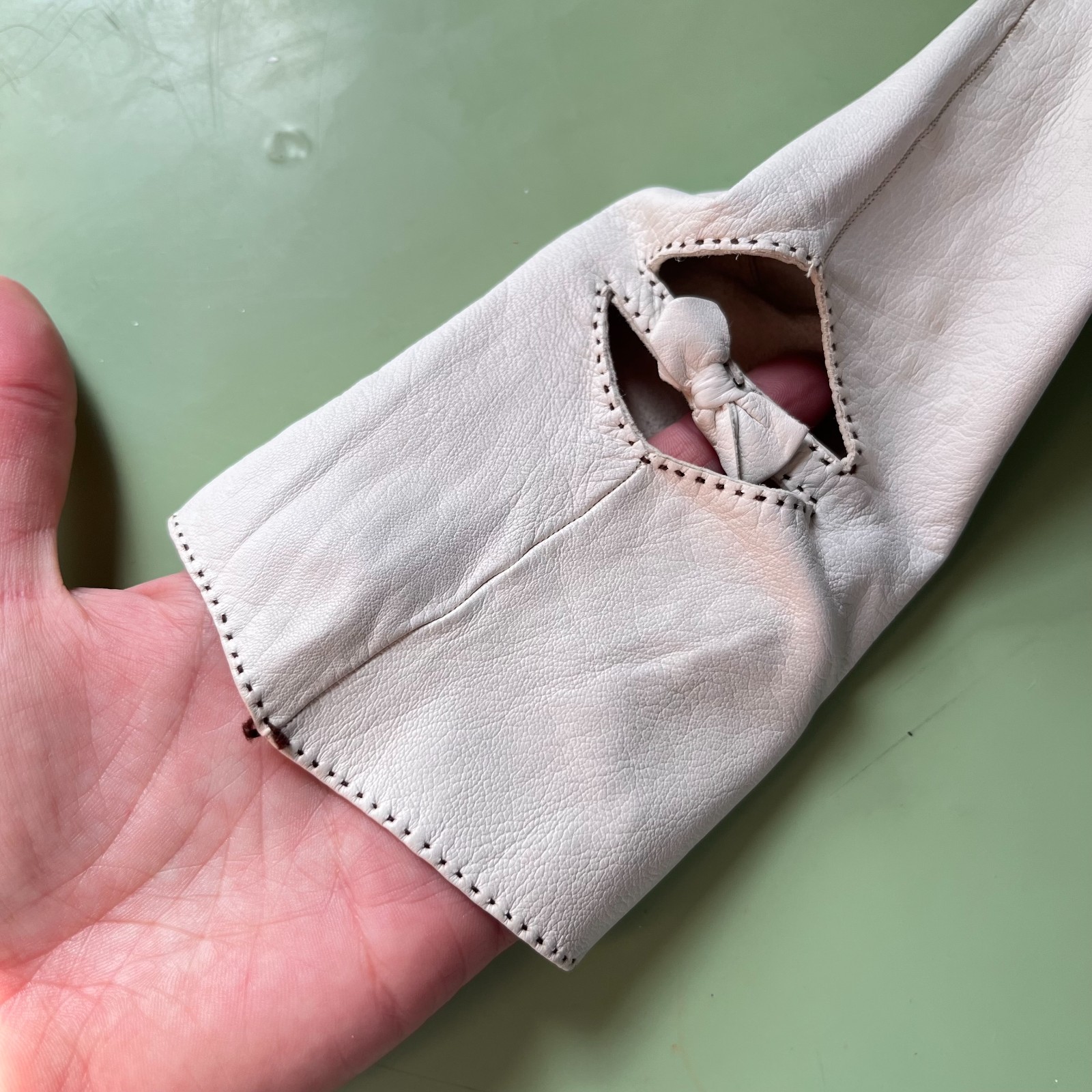 как выглядит VTG 50s French Kidskin Ivory Leather Gloves Sz 7 12 Couture Wrist фото