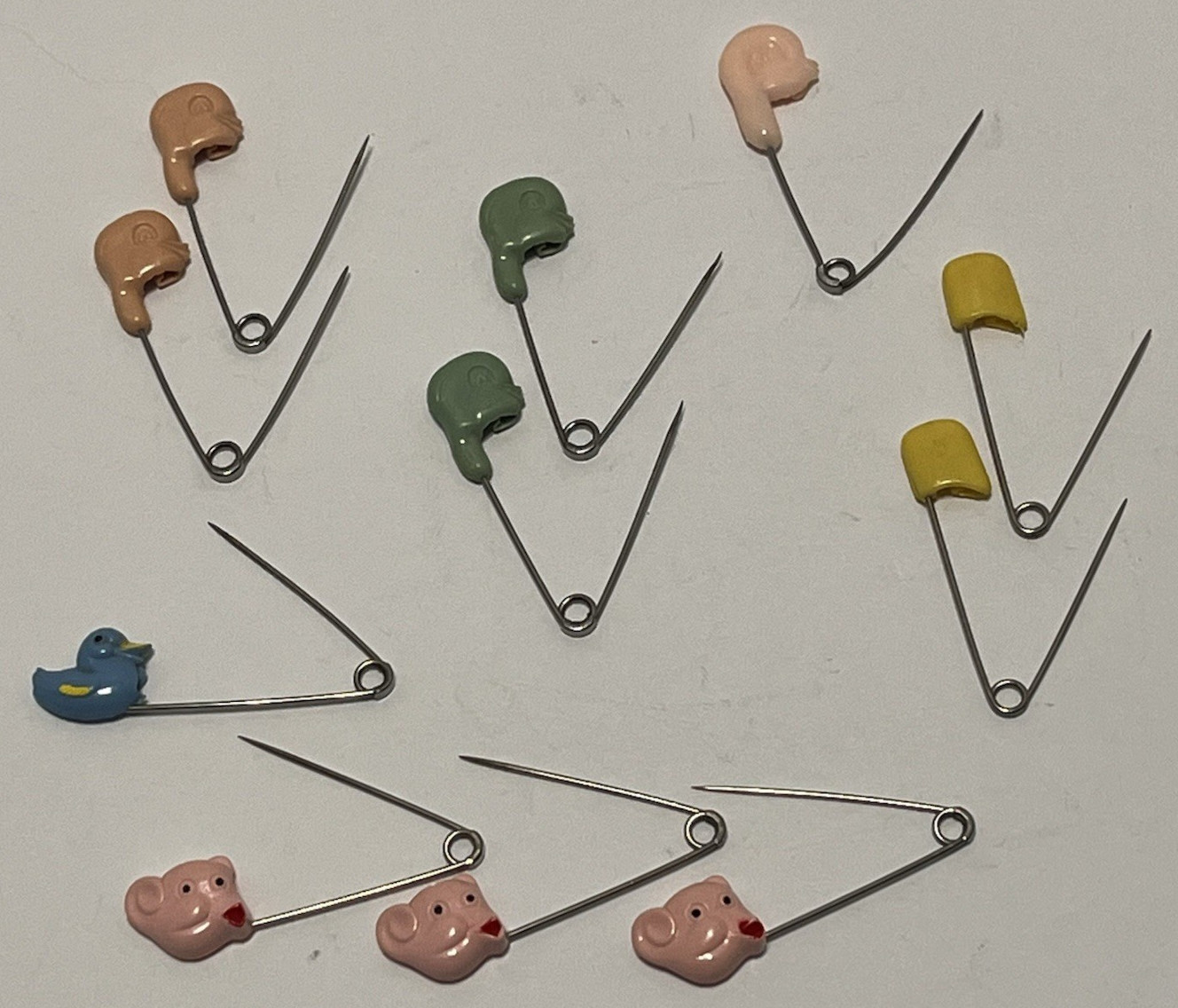 Vintage Baby Diaper pins, Elephant, Bunny, Duck, lot of 11