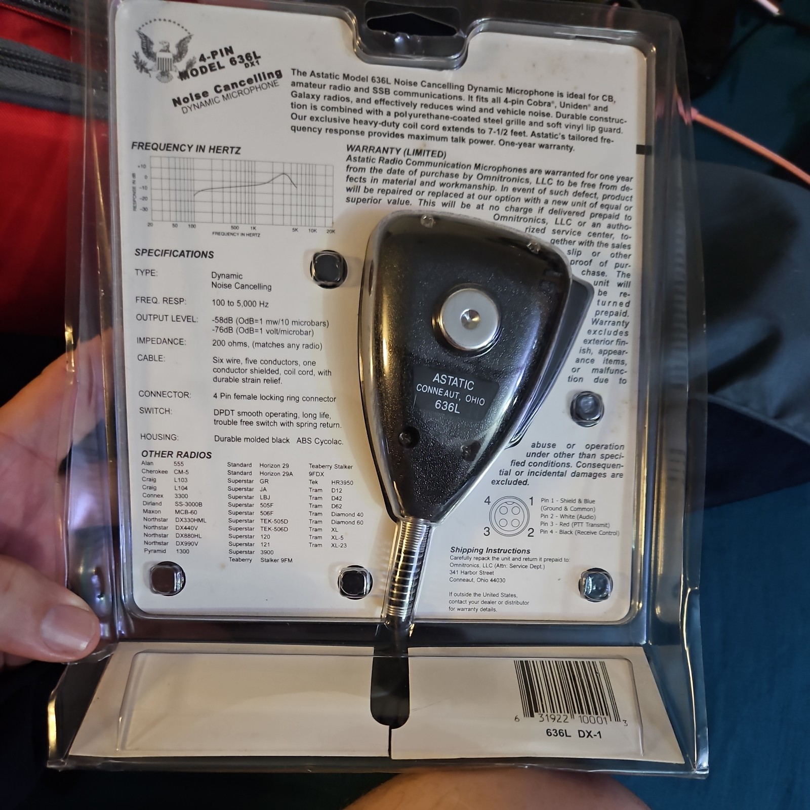 ASTATIC 636L CLASSIC CB Ham Radio Microphone 4 Pin mic NEW BLISTER PACKAGE
