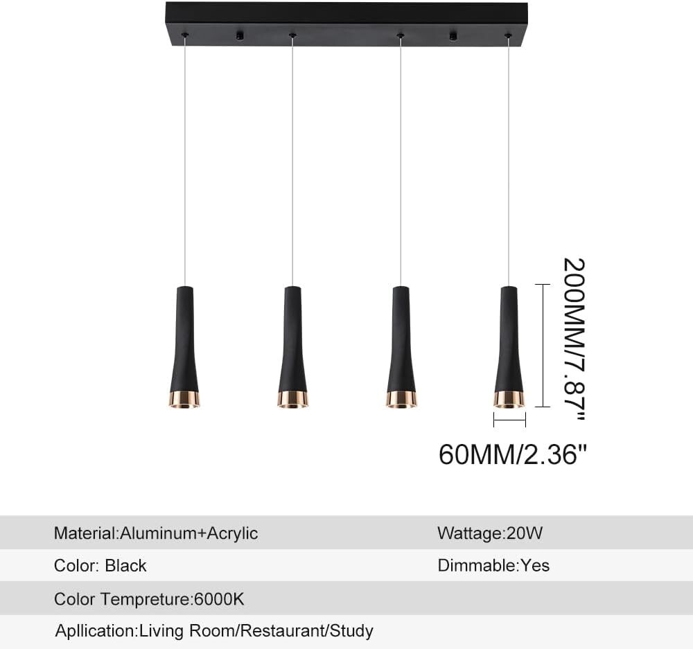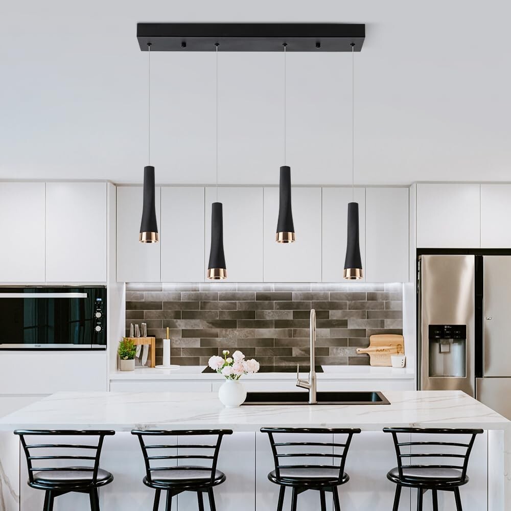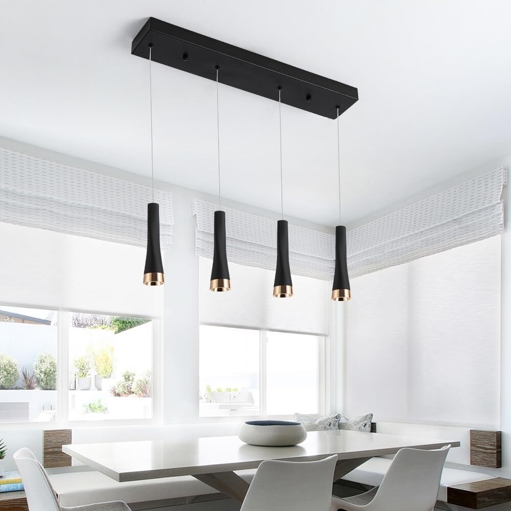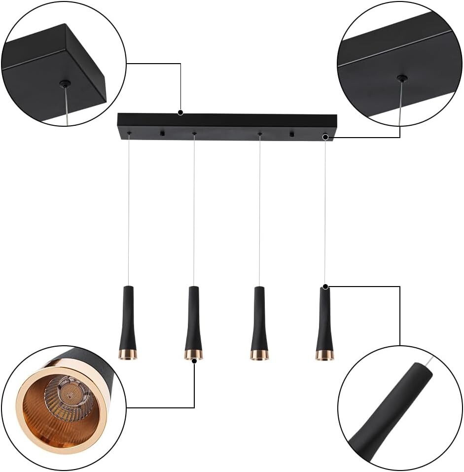 Modern 4-Light Island Pendant Lighting, 20W 2500LM Adjustable Black Fixture