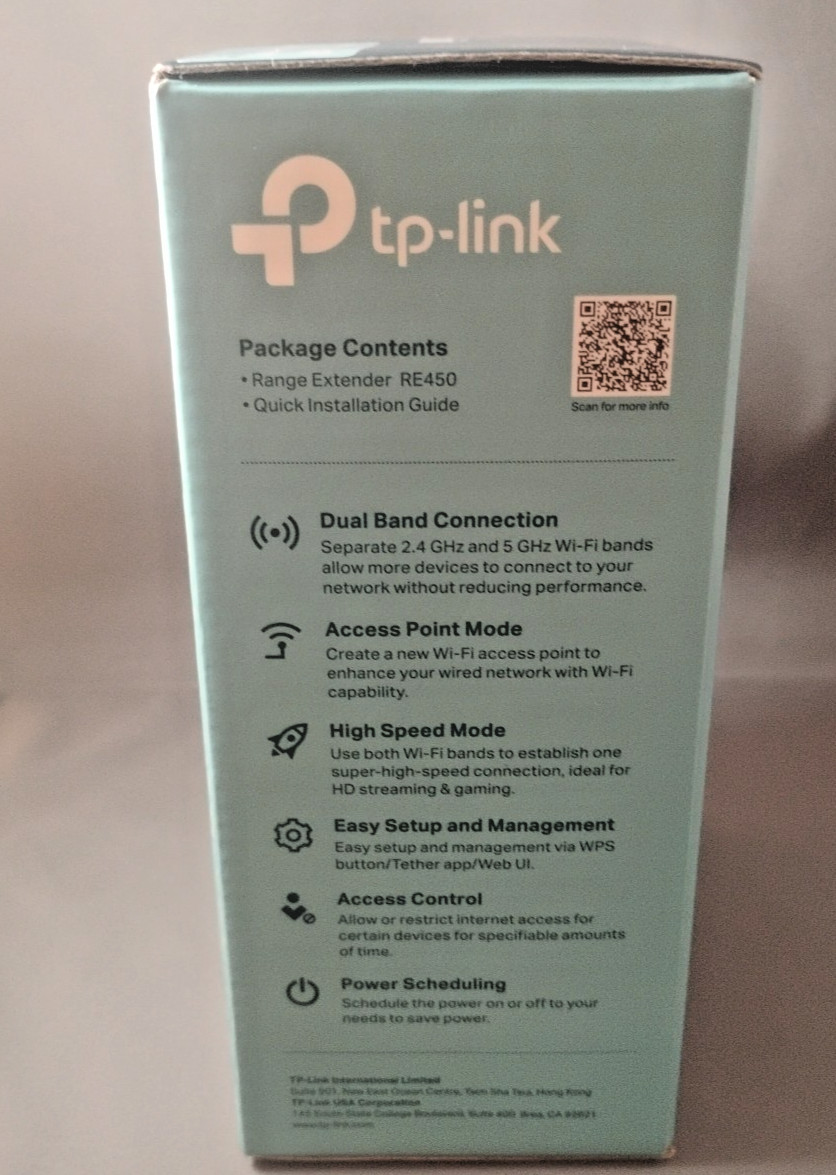 TP-Link RE450 AC1750 Dual Band WiFi Range Extender Gigabit Ethernet Open Box NEW