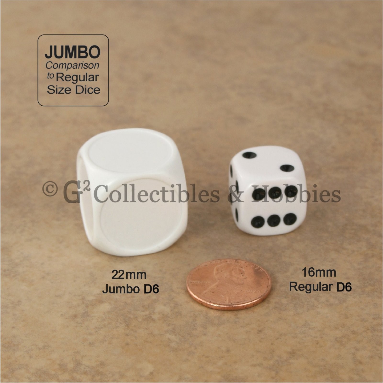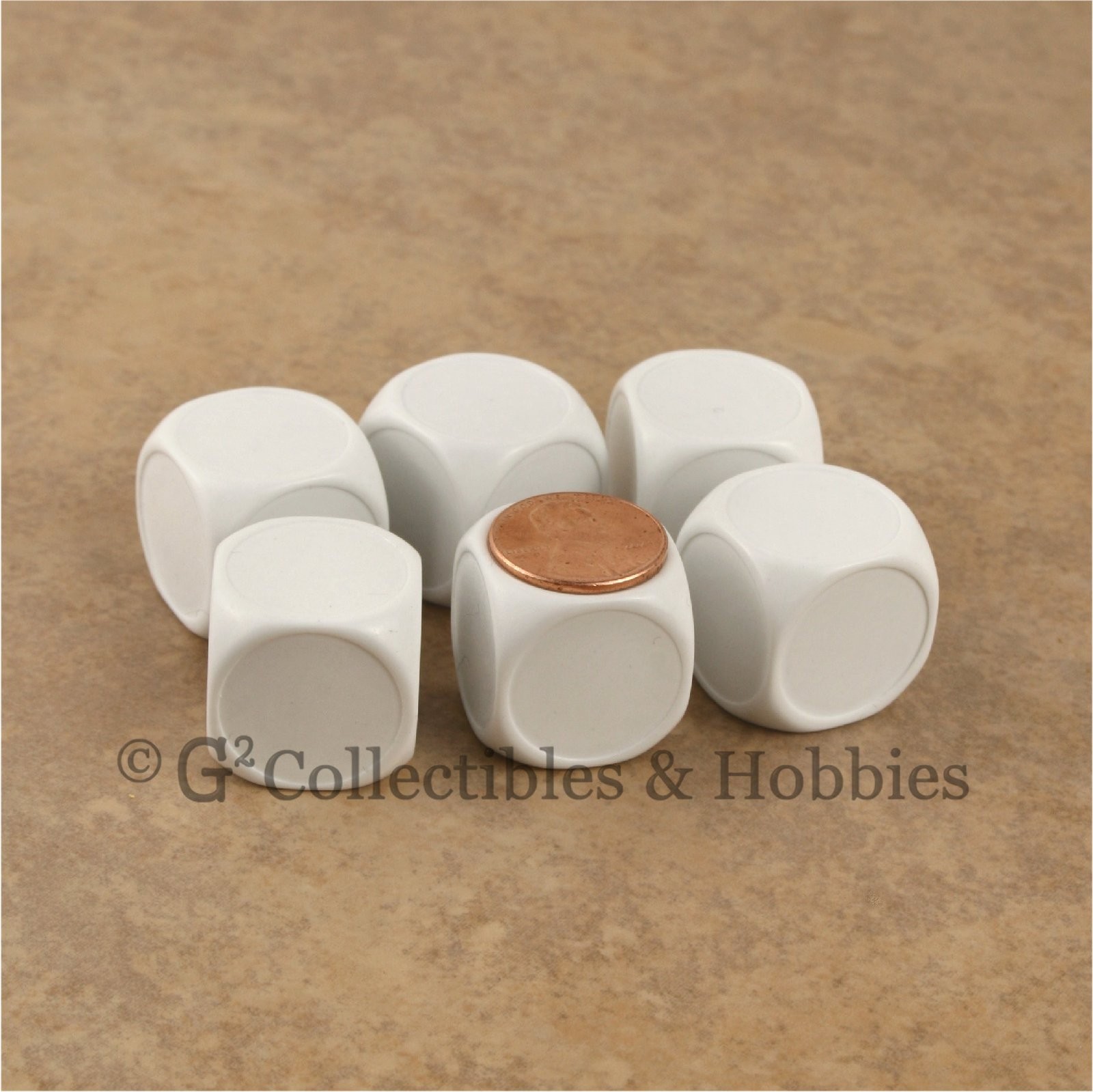 NEW Set of 6 Jumbo 22mm White Blank Rounded Edge Dice Six Sided D D RPG Large D6