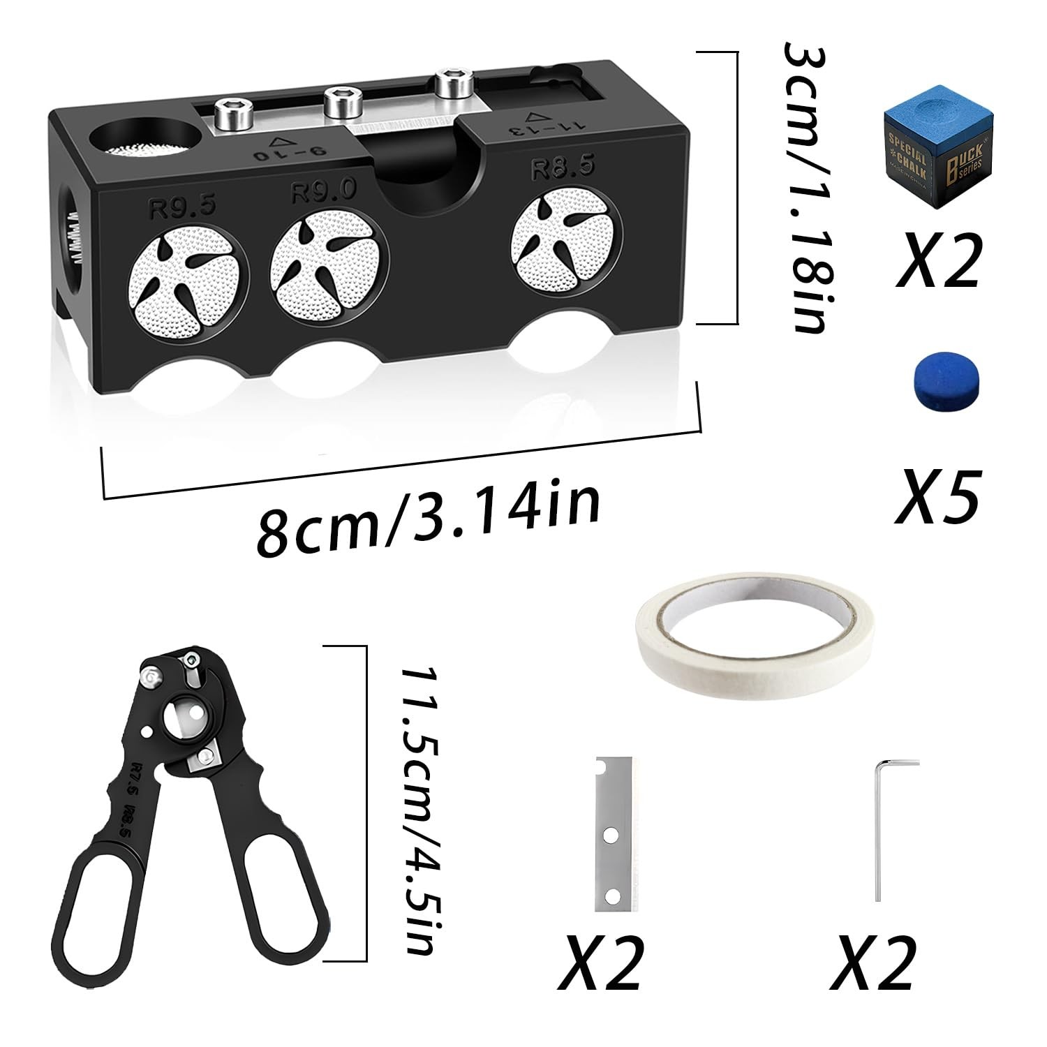 11-in-1 Billiards Pool Cue Tip Shaper, Large and Small Pool Cue Tips Kit, Poo...