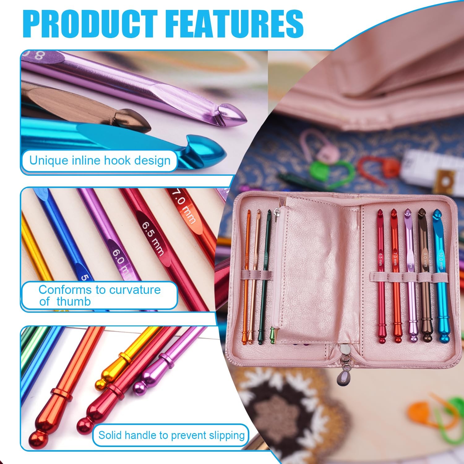 как выглядит Latest Inline Crochet Hook Set with Case Aluminum Ergonomic Crochet Hooks,Non... фото