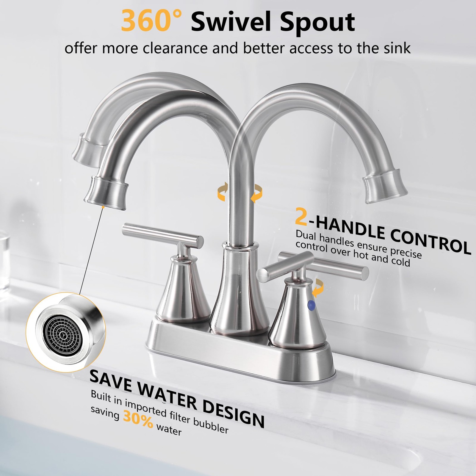 Bathroom Sink Faucet 4 Inch 2 Handle Centerset Brushed Nickel Lead-Free Moder...