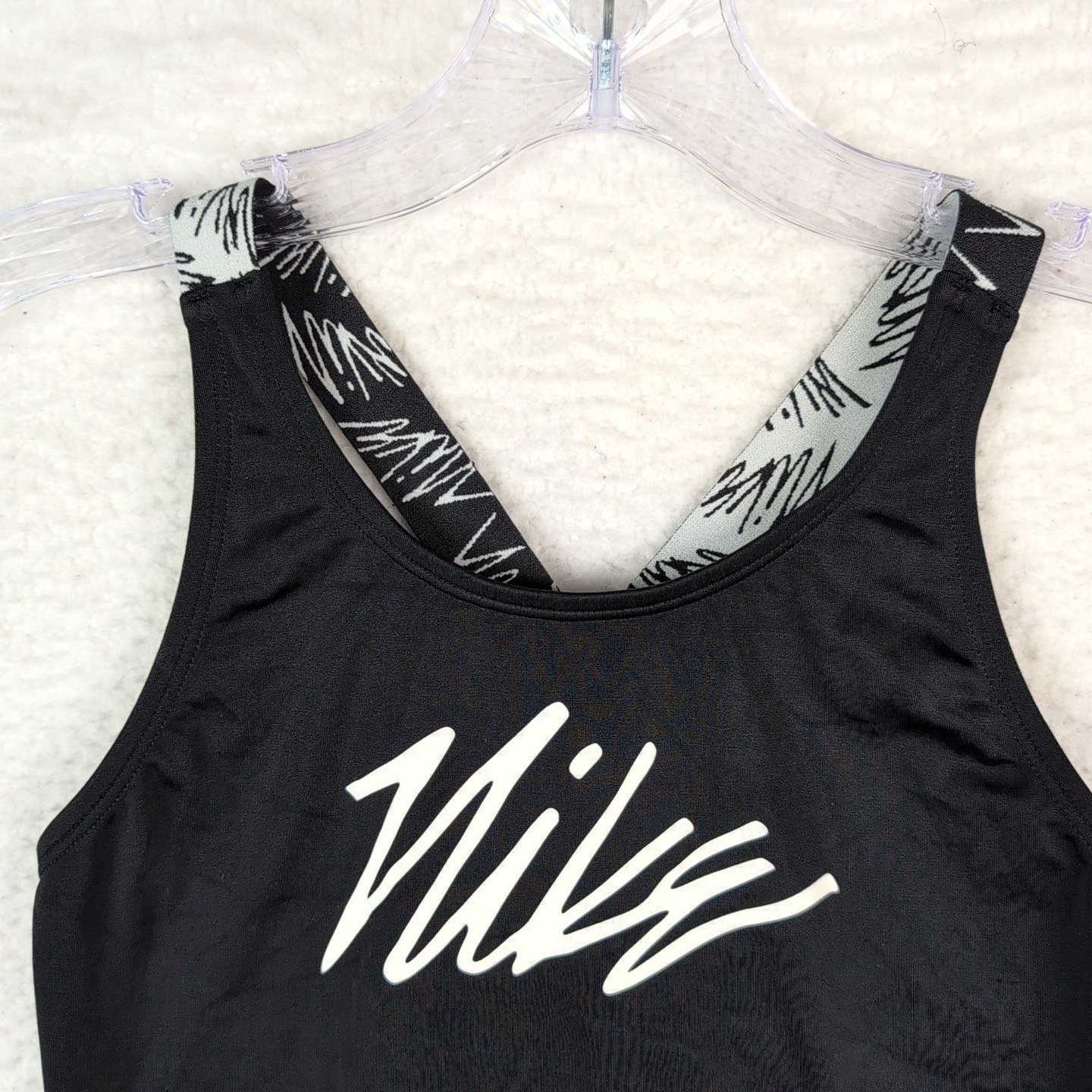 Nike Logo Tape Black Cross Back Tankini Swim Top Size Medium Girls