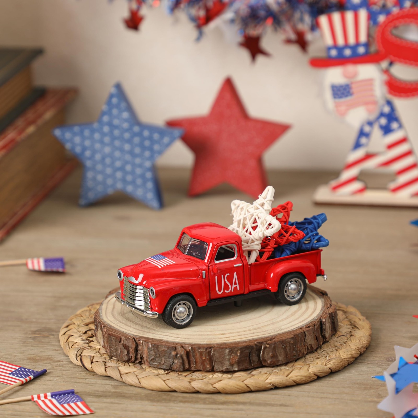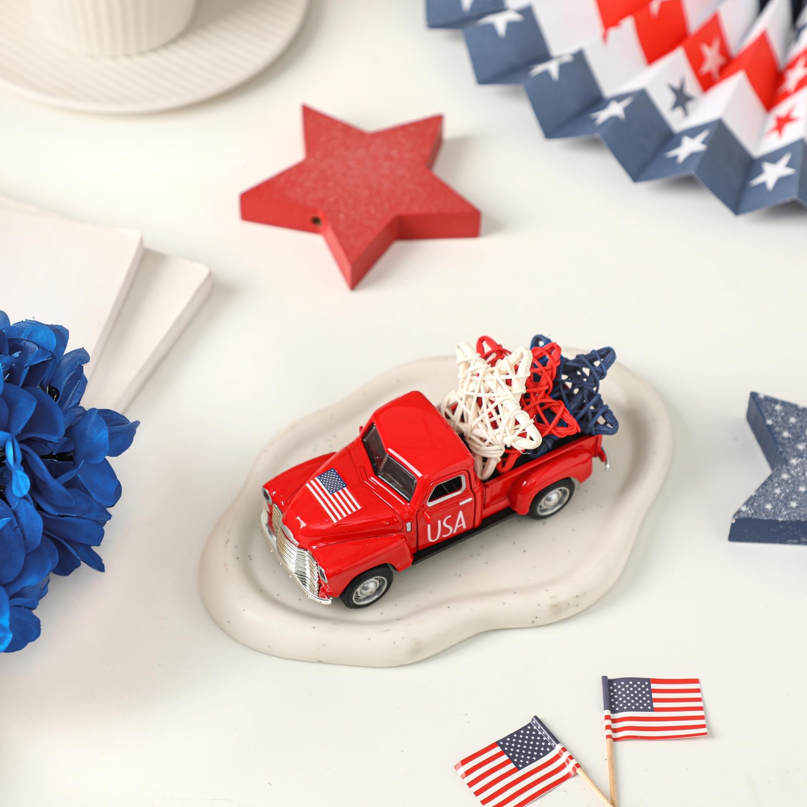 4th of July Truck Decorations - Farmhouse Metal Truck Car Decor with Stars De...