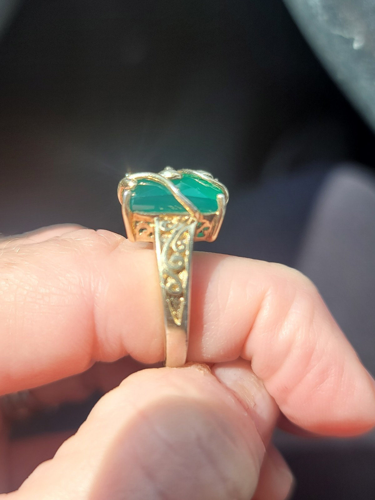 как выглядит Green Chalcedony Vine Ring - Gold Over 925 Sterling Silver фото