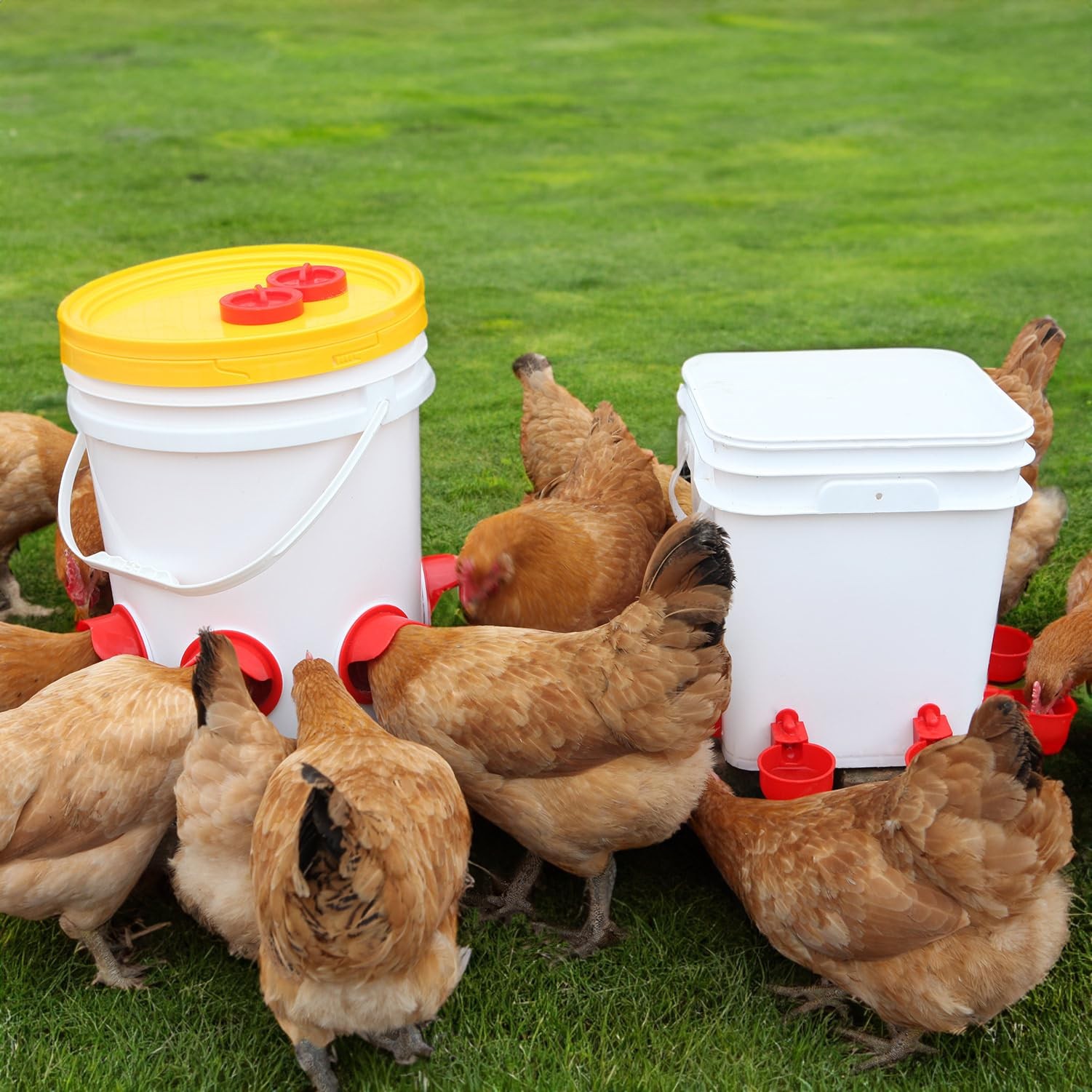 Chicken Feeder No Waste Automatic Poultry DIY Feeders and red