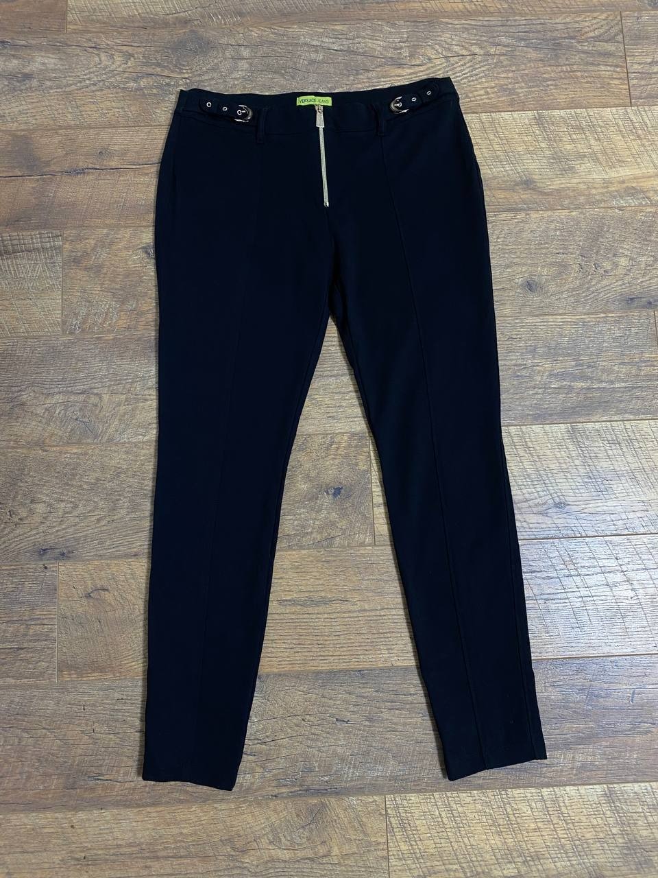 как выглядит Versace Jeans Womens Black Slim Fit Trousers Front Zip Buckle Detail IT48 US12 фото