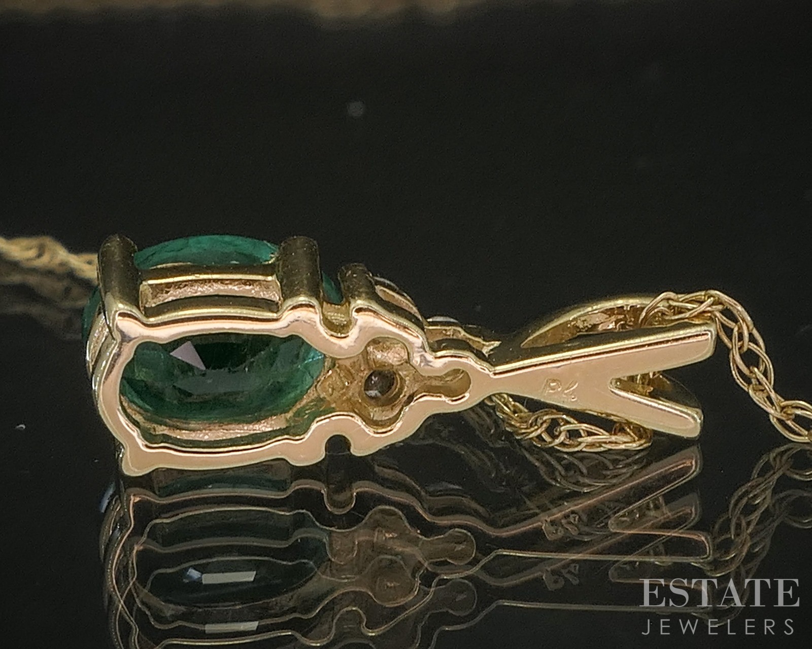 как выглядит 14k Yellow Gold Natural Emerald Diamond Ladies Necklace 1.6g 18"L p16134b фото