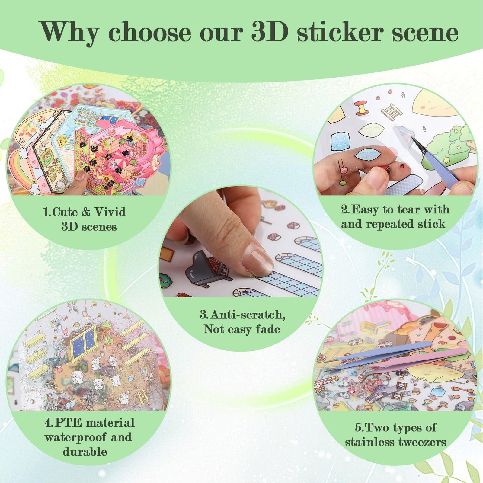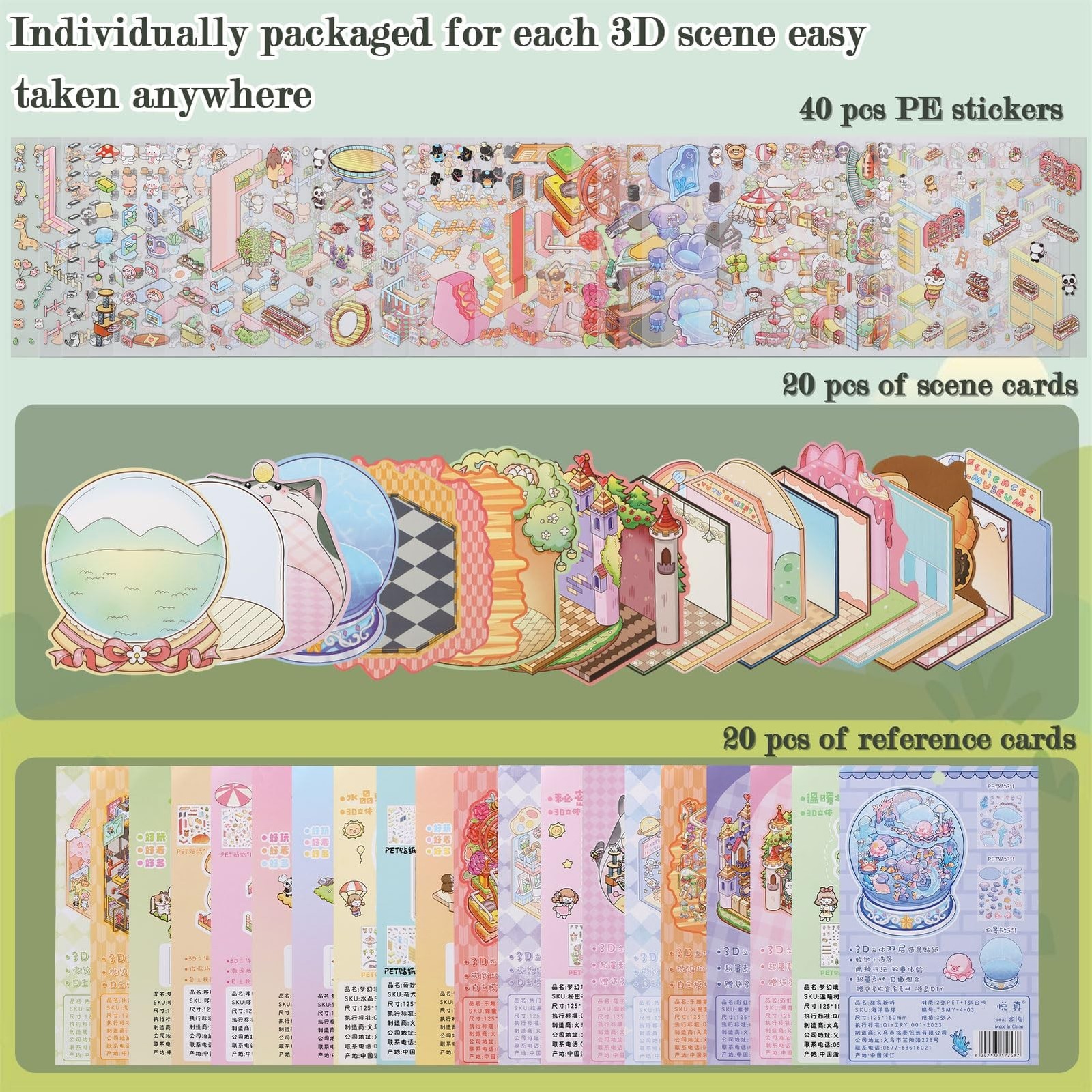 20 Sets of DIY 3D Sticker Scene, Cute Kawaii Cartoon Mini Room Scene Stickers...