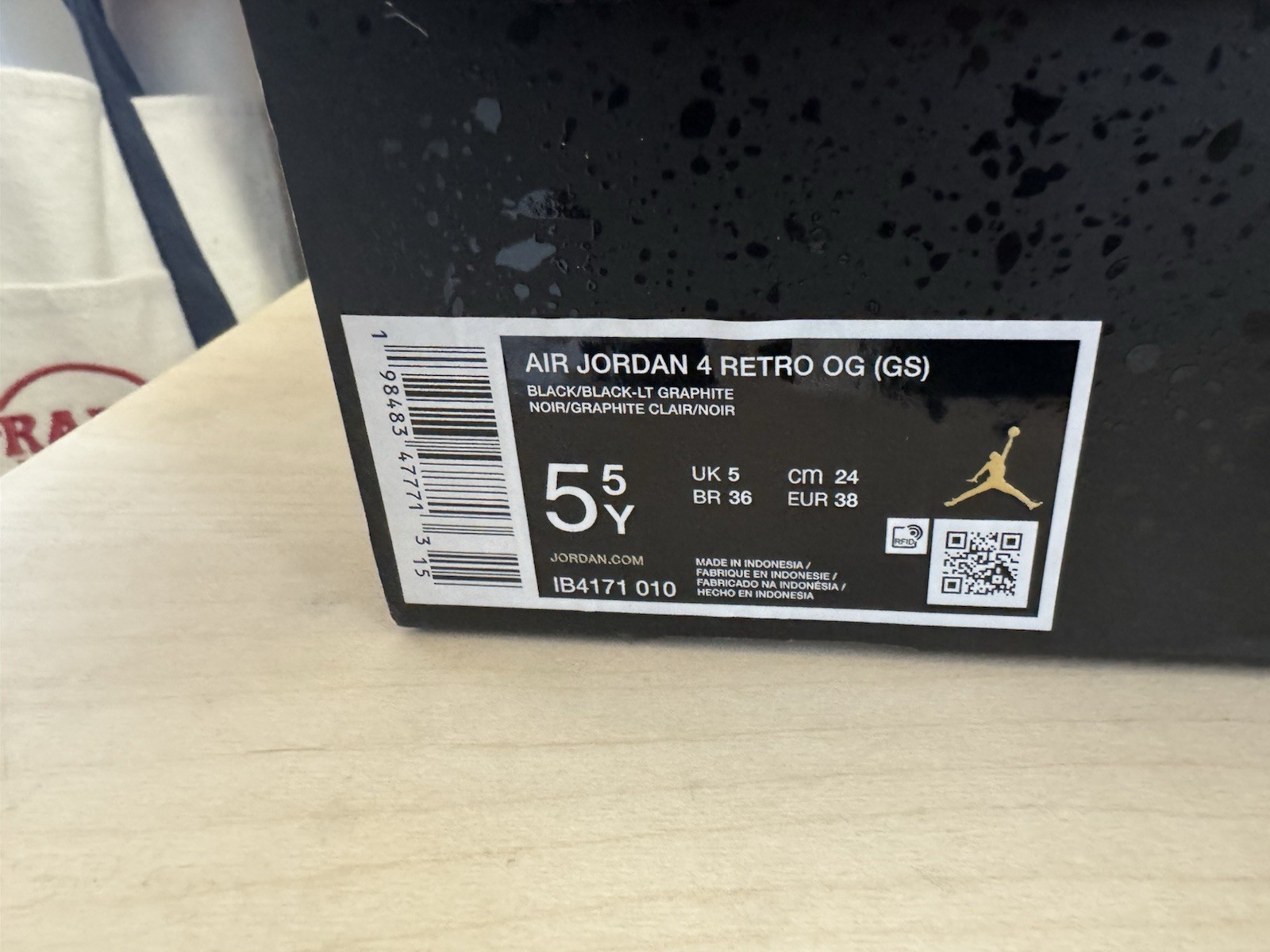 как выглядит Size 5.5Y - Nike Air Jordan 4 Retro Black Cat GS 2025 IB4171-010 SHIPS TODAY фото