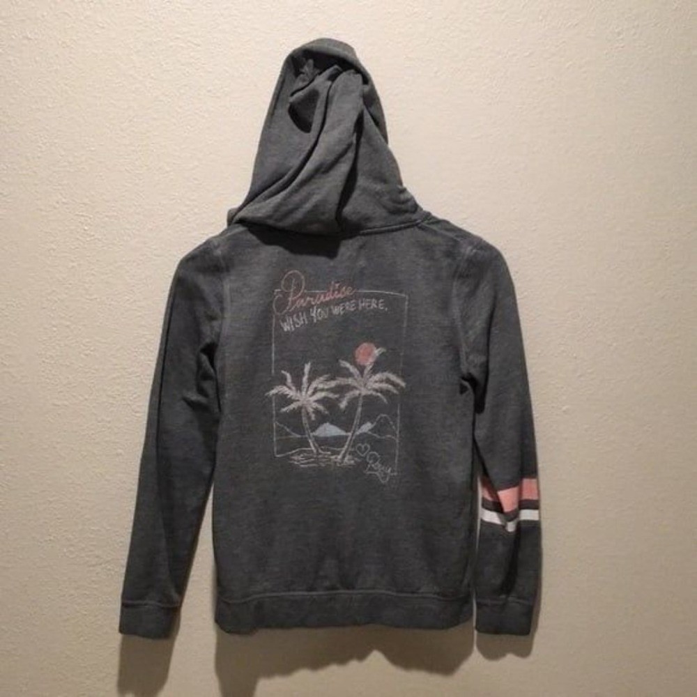как выглядит Roxy Sweatshirt Hoodie Full Zip Size 12 gray surfer beachy lightweight фото