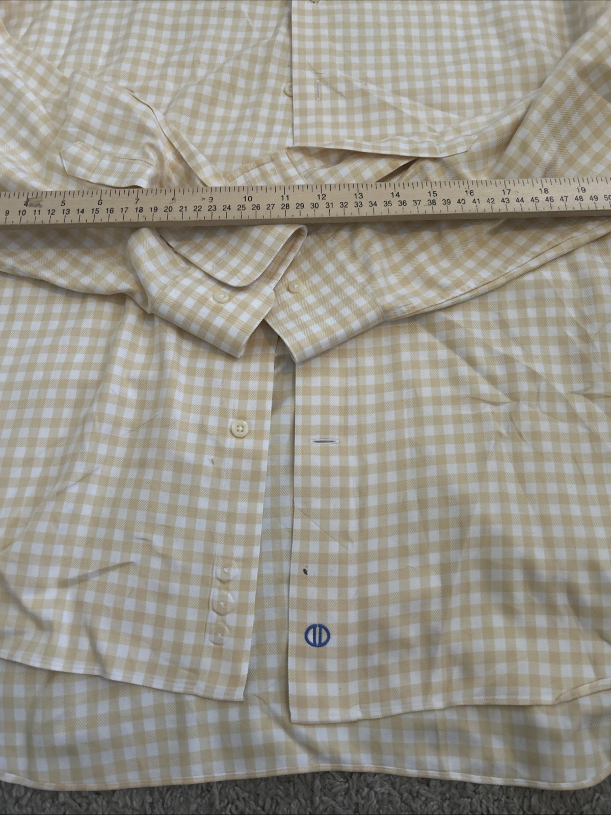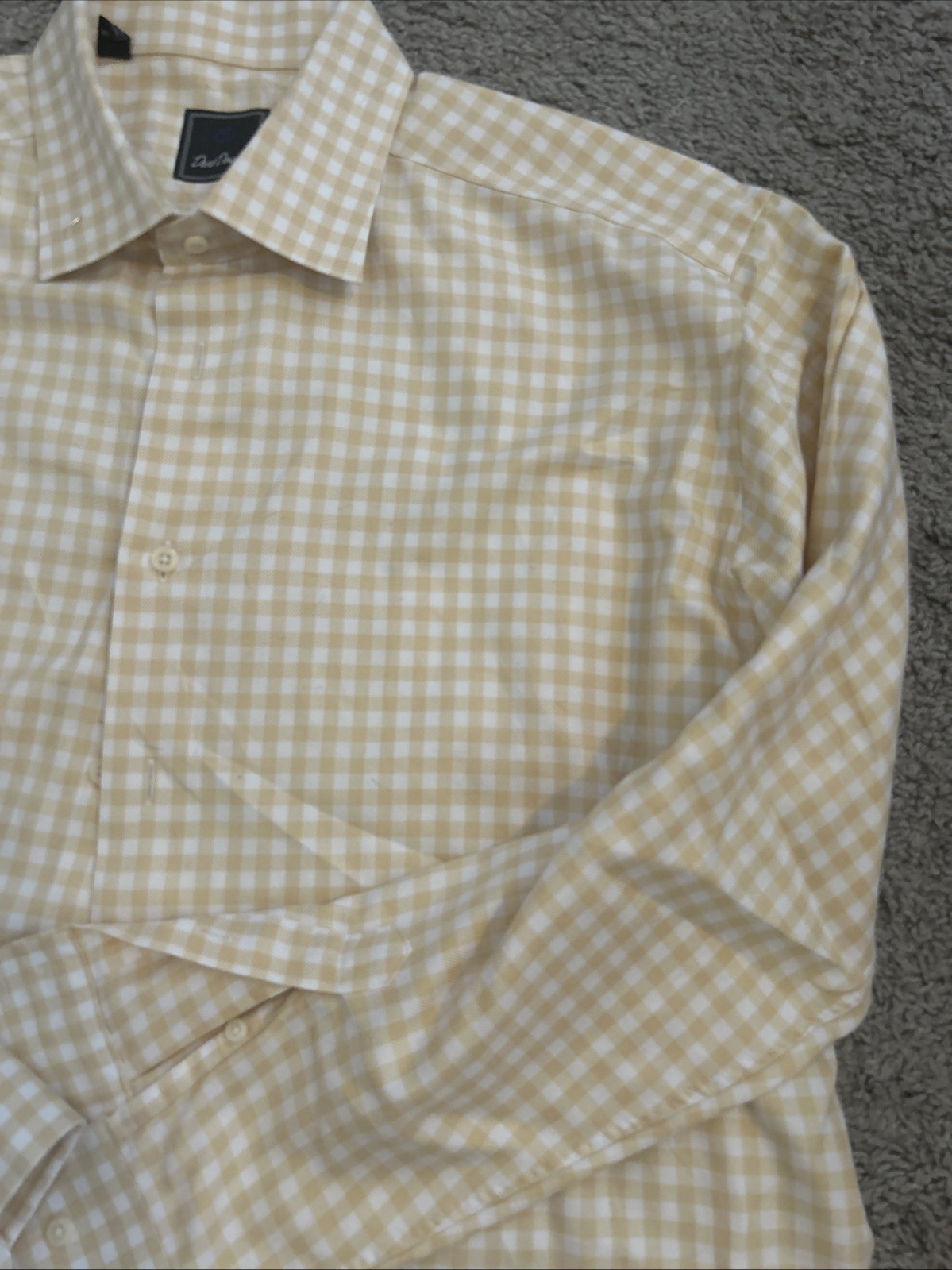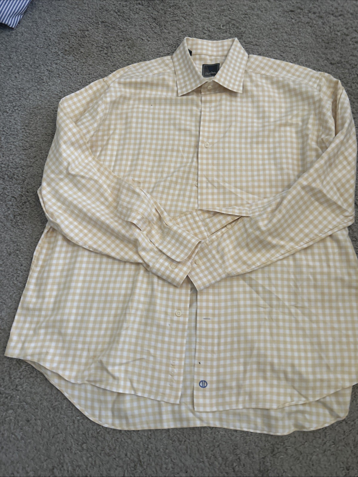 как выглядит David Donahue Dress Shirt Mens 17-34/35 Blue/Orange Checks Trim Fit Long Sleeves фото