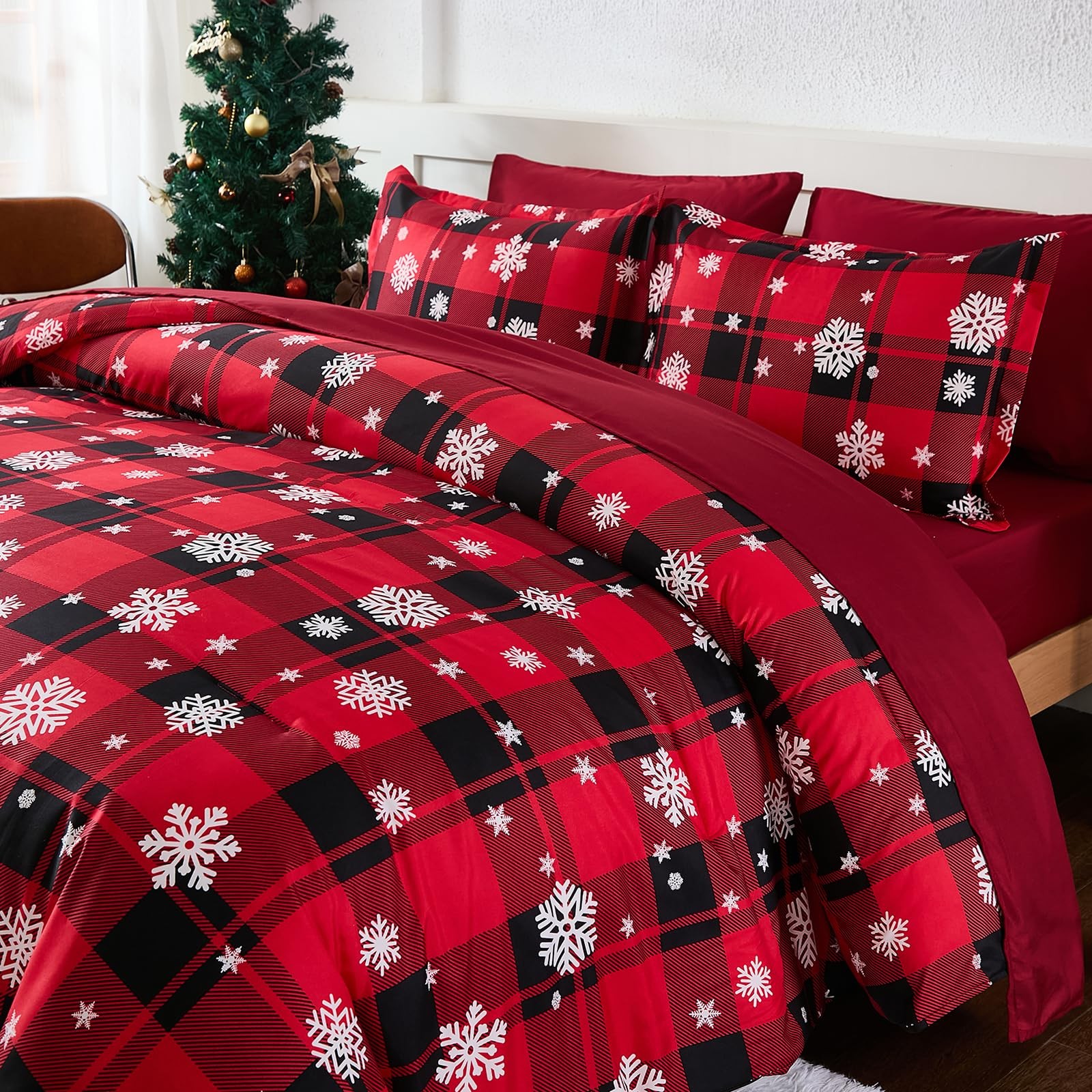 Christmas Queen Size Bedding Set, Christmas Comforter Set 7 Piece Red plaid S...