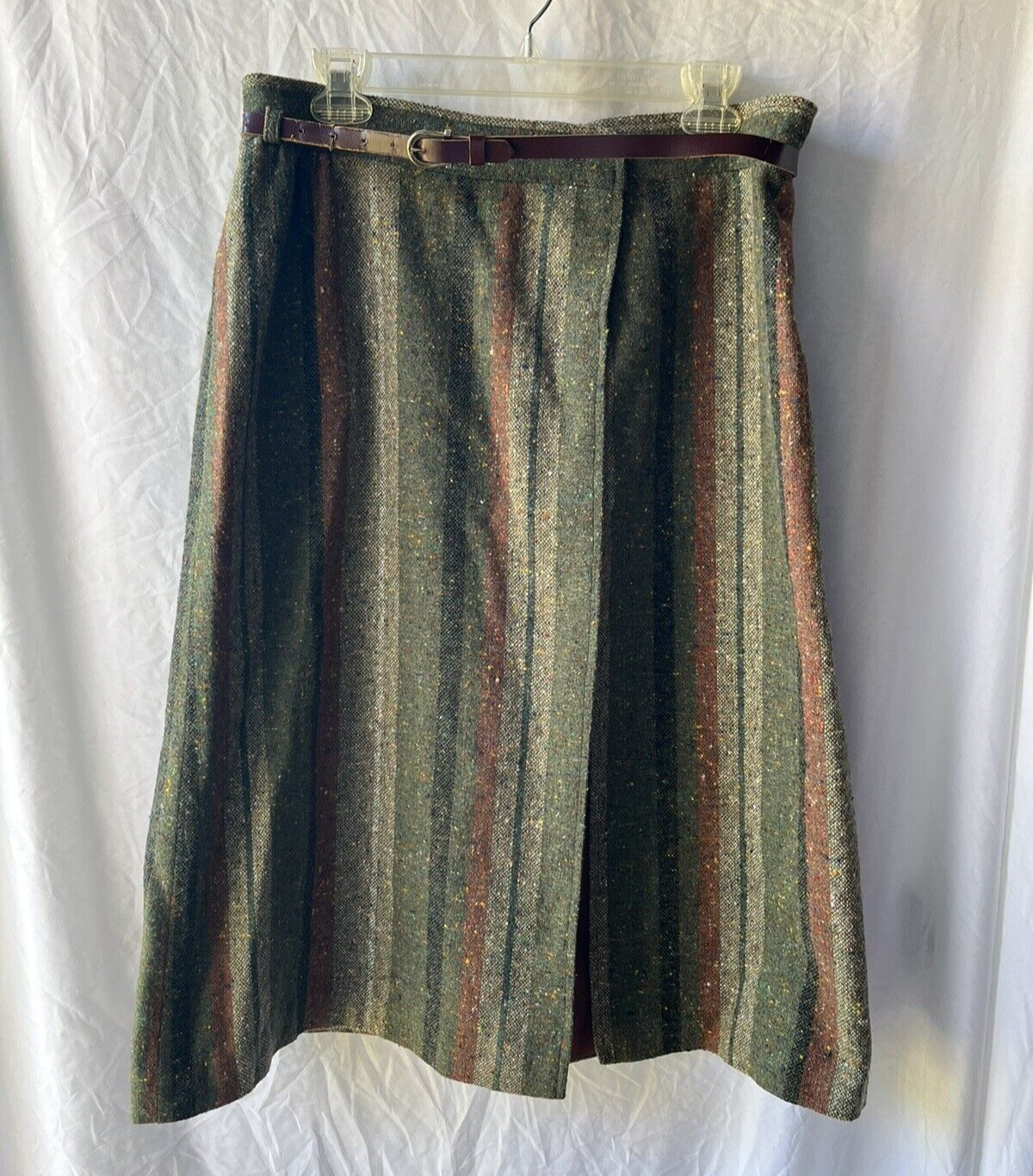 как выглядит Vintage A Line Midi Wool Blend Long Skirt Jacket Set Sweet Apple Olive Striped фото