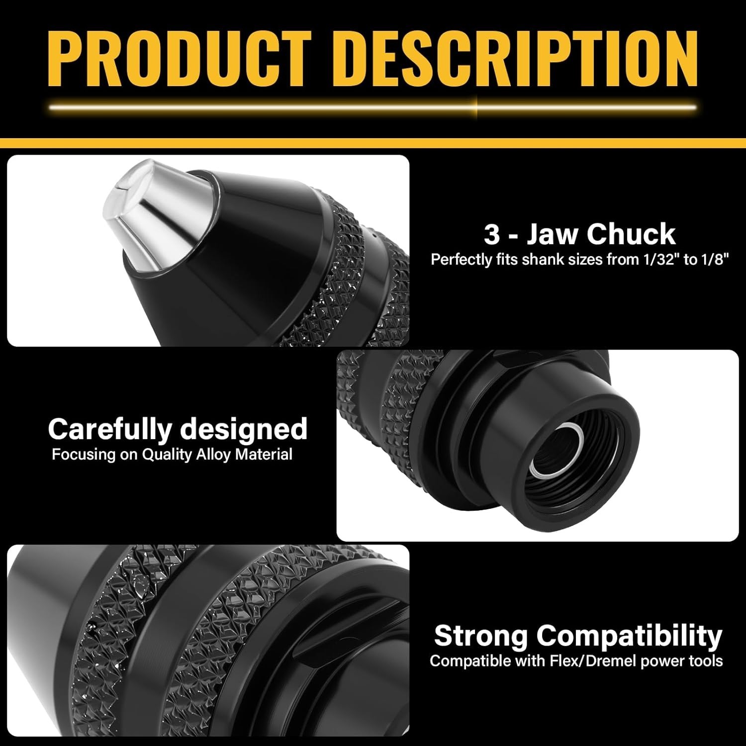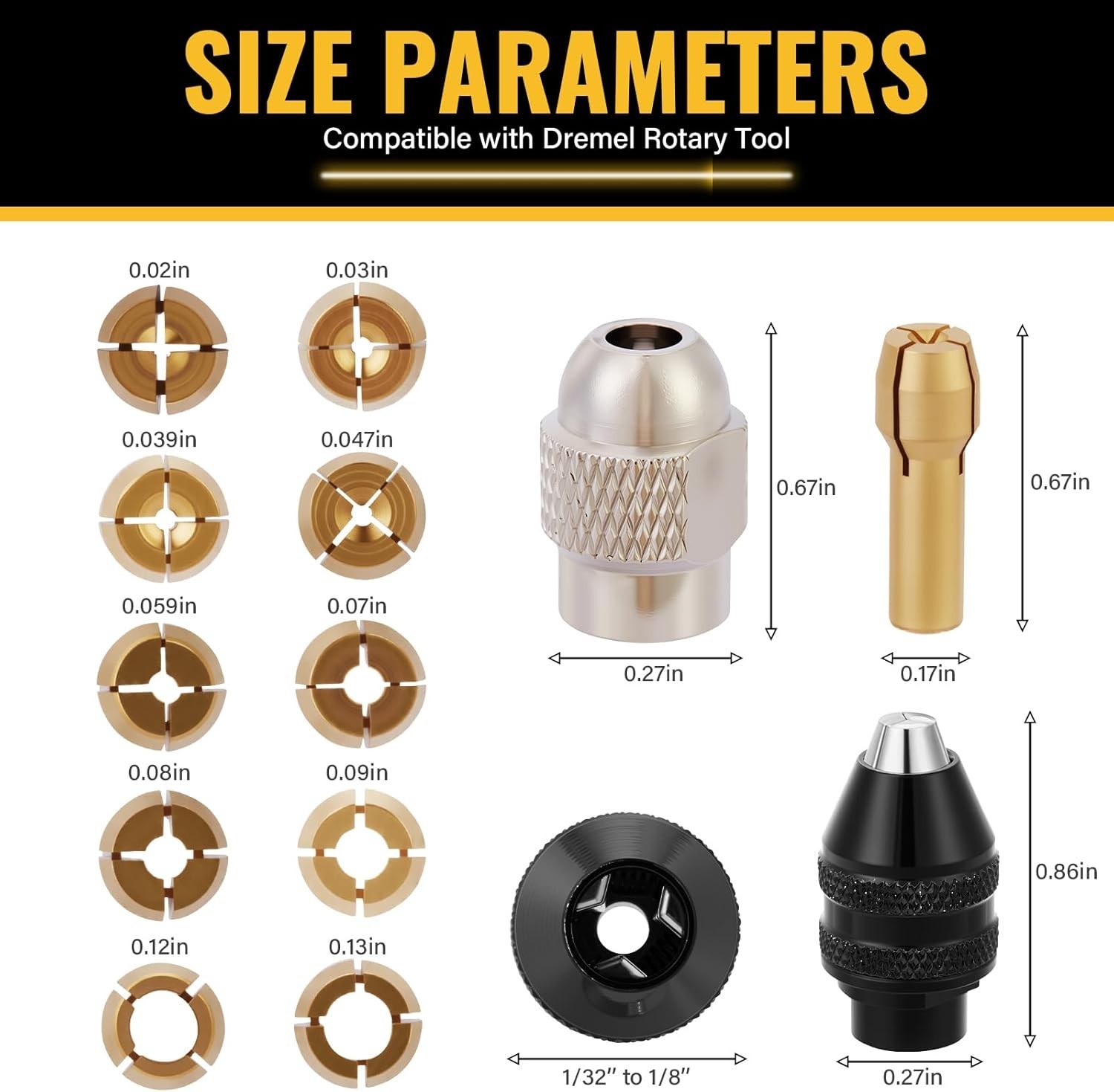 15PCS Keyless Drill Chuck Collet Set 1/32 1/8 for Dremel Rotary Tool 4486 Comp