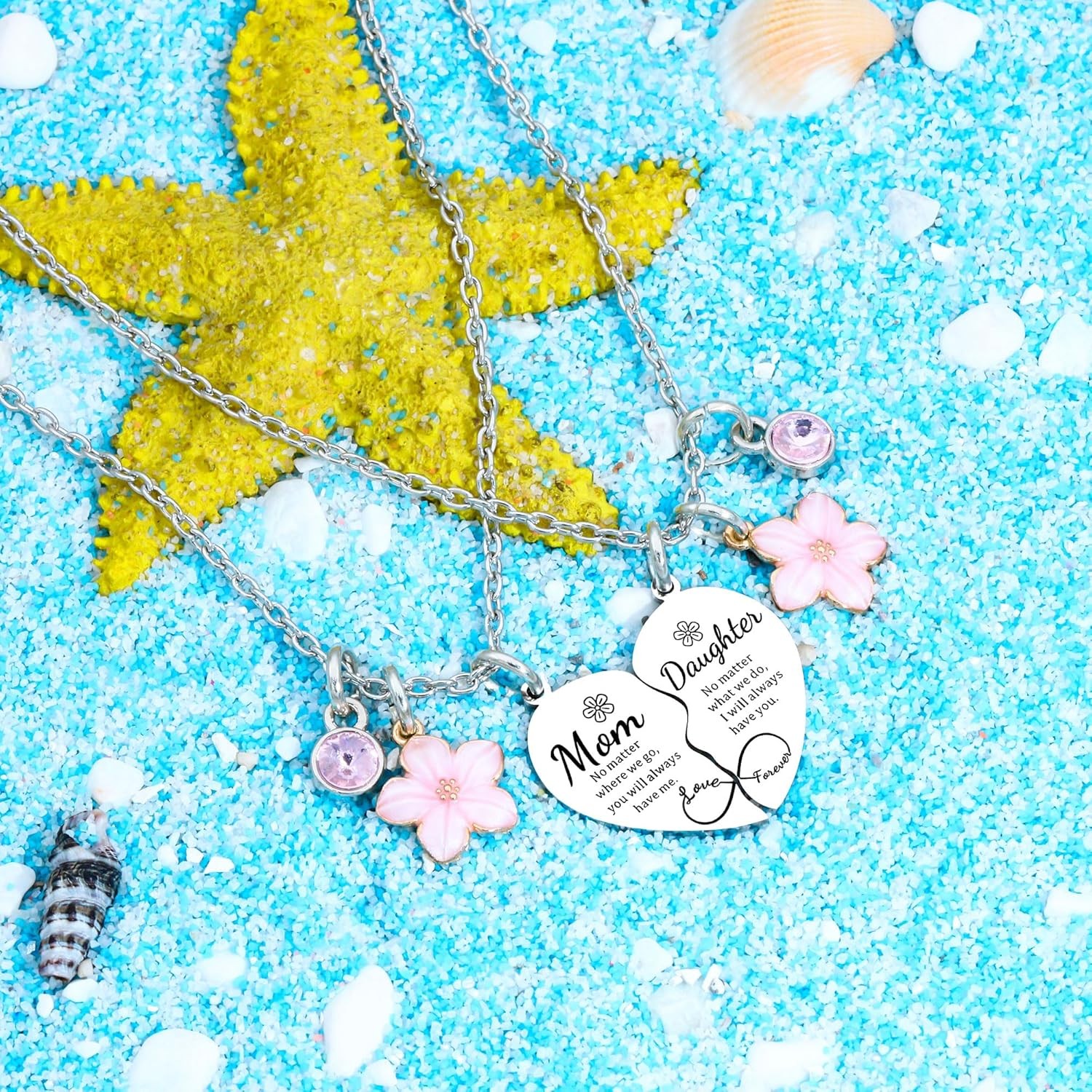 lauhonmin 2Pcs Mother Daughter Heart Matching Pendant Necklace Set Gifts For Mom
