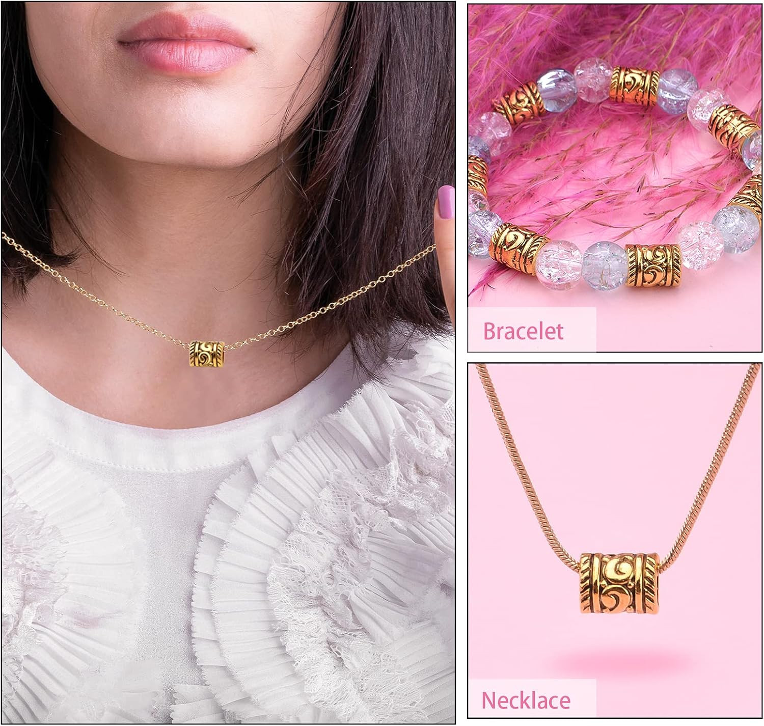 как выглядит 100Pcs Antique Gold Large Hole Spacer Beads Tibetan Alloy Barrel Column Hollow T фото