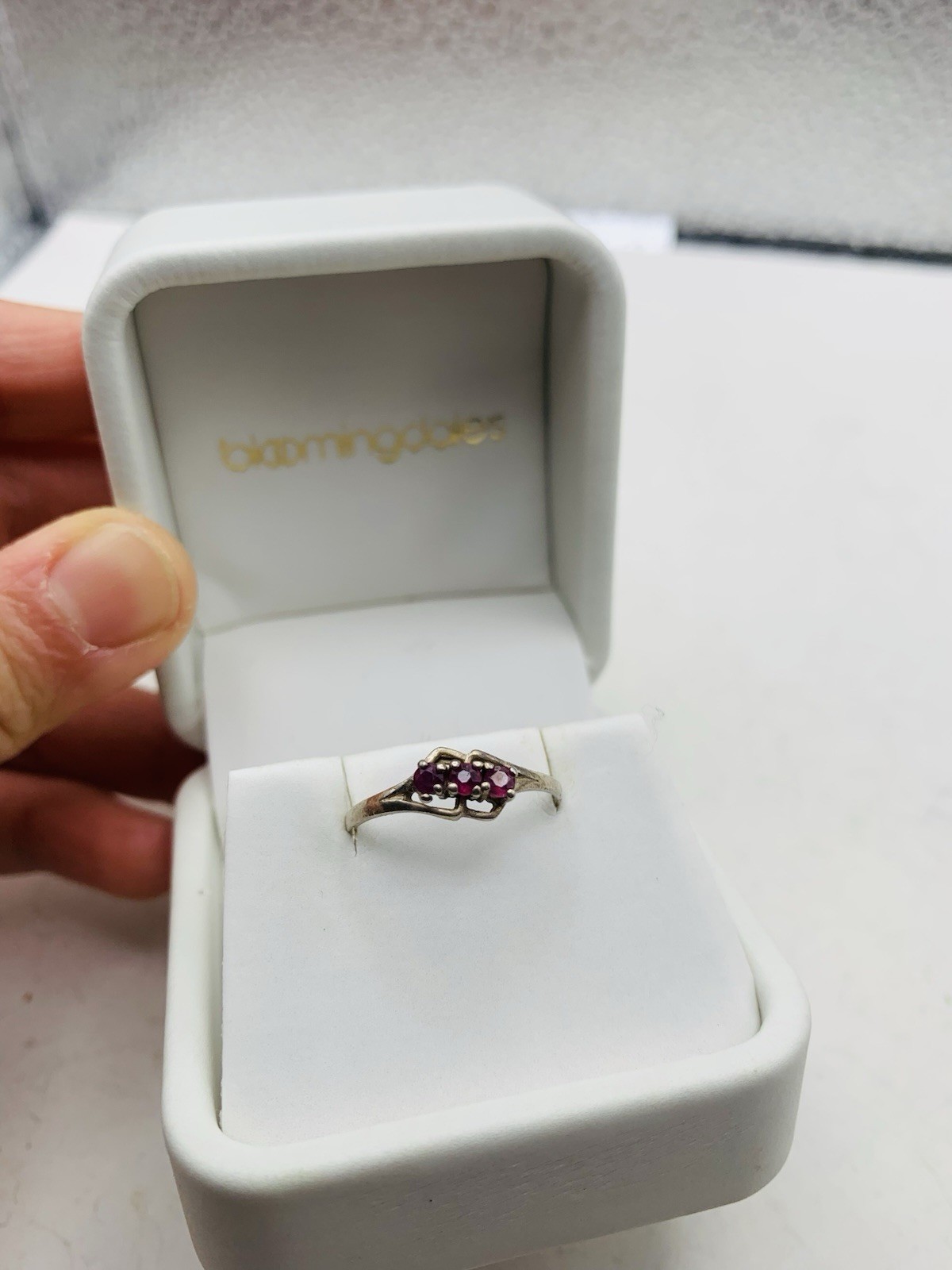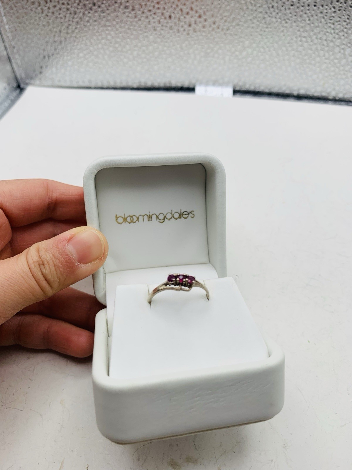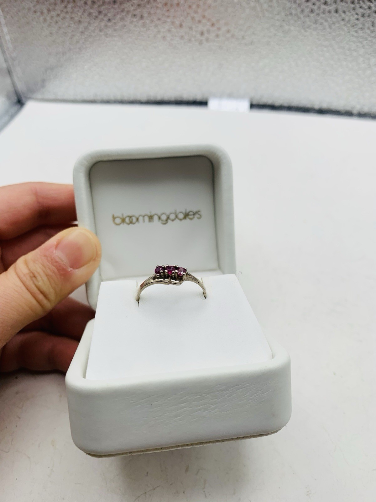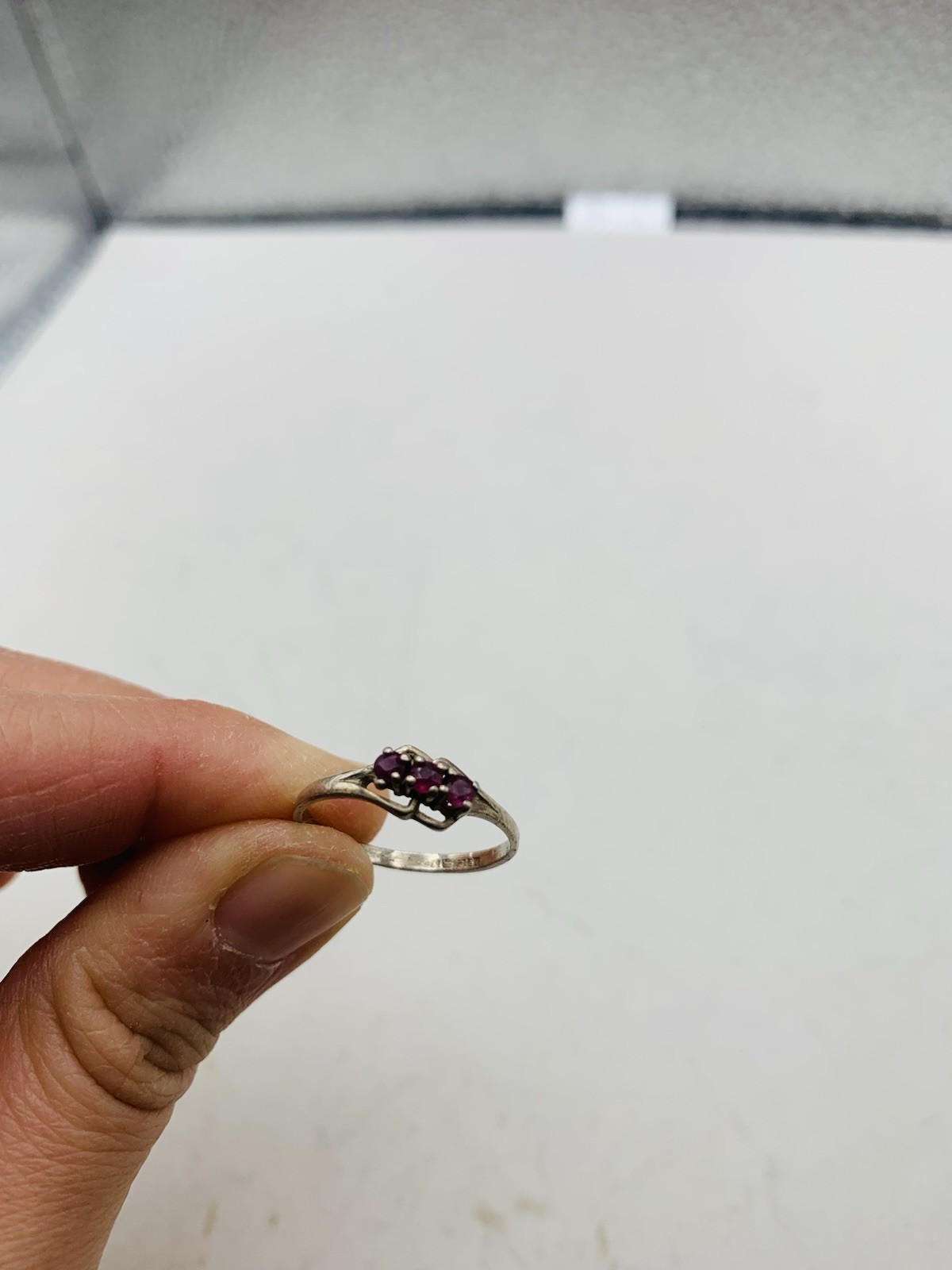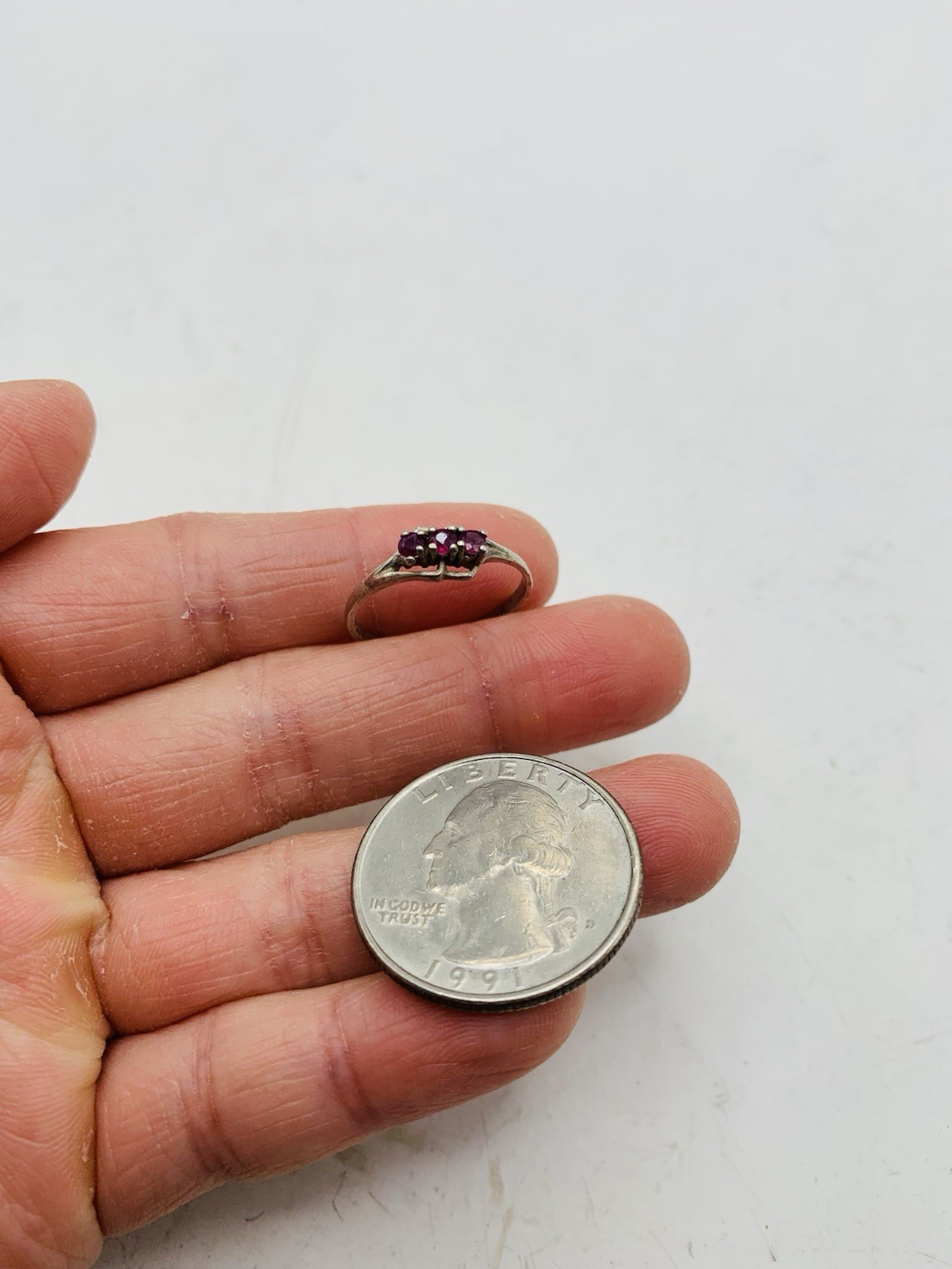 как выглядит Vintage Sterling Silver Dainty Pink Crystal Triple Gemstone Size 6 Ring фото