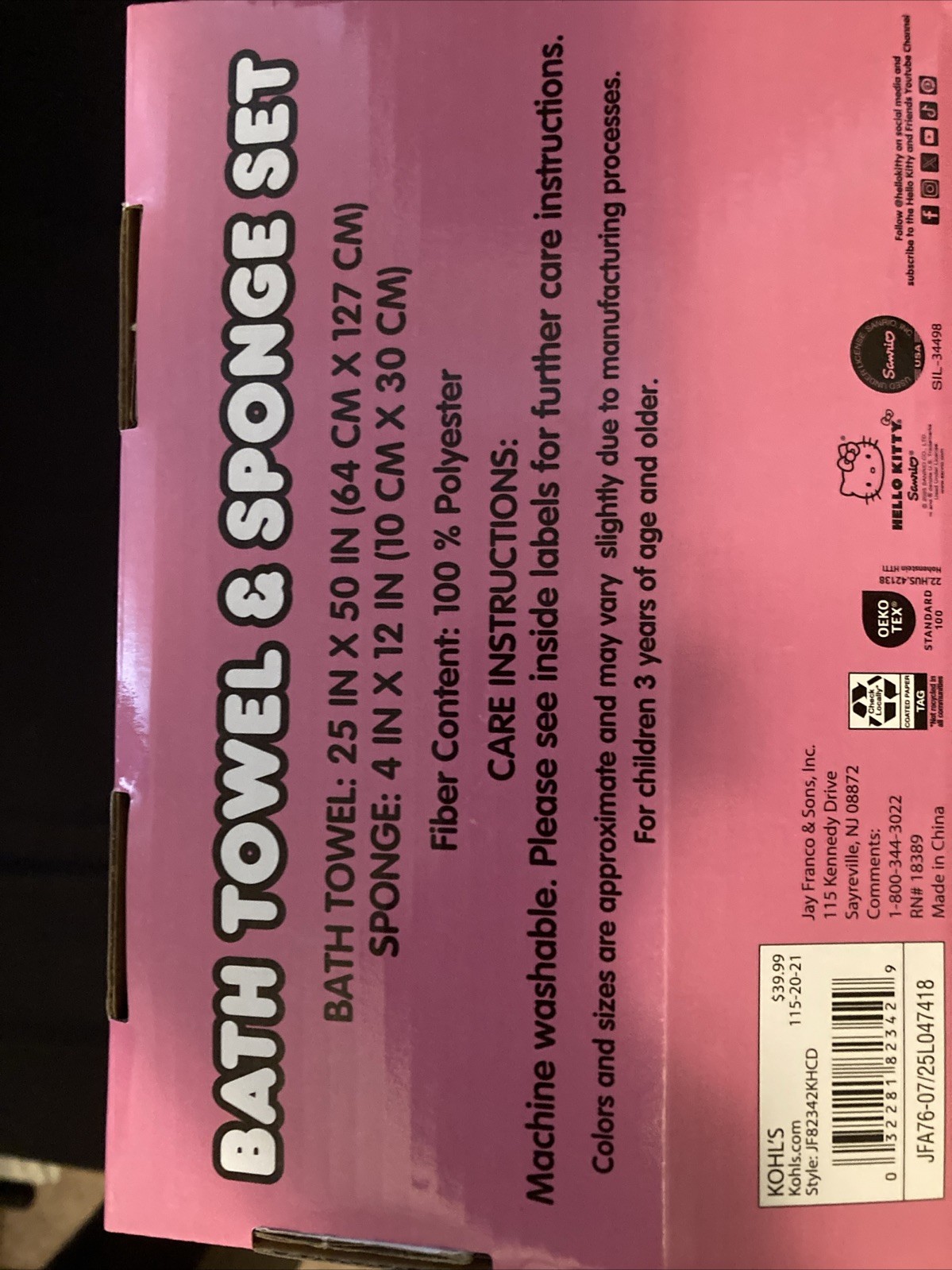 как выглядит Kohls Hello Kitty Sanrio Bath Towel 25 x50  And Sponge Set 4 x12 Pink White фото