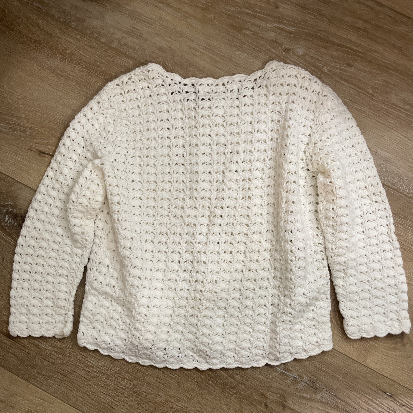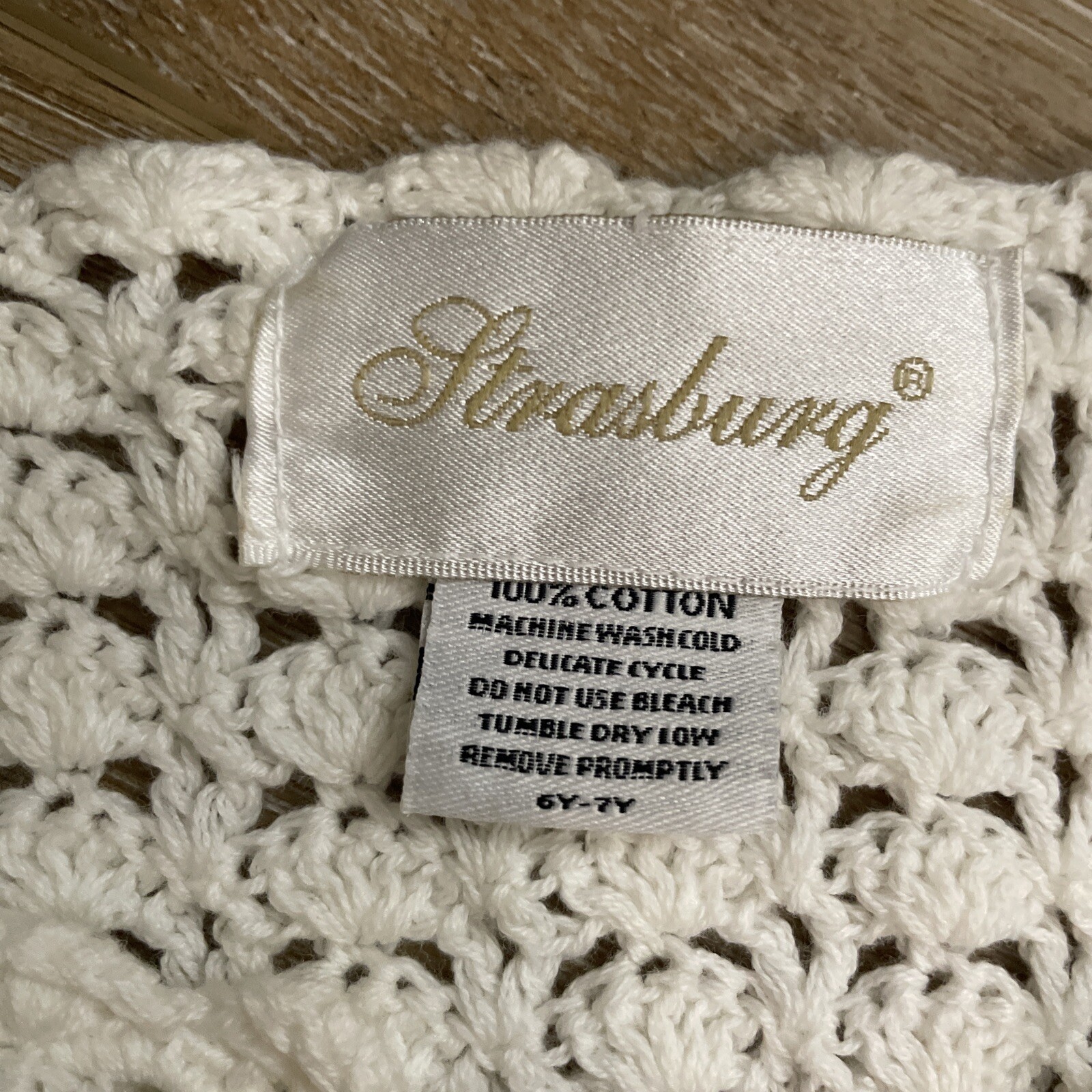 Strasburg Crochet Cotton Knit Sweater Girls 6/7 Ivory Open Front Boho Cottage
