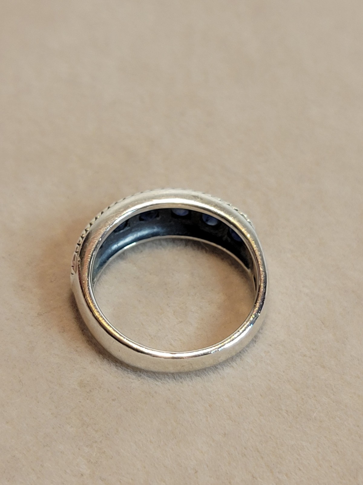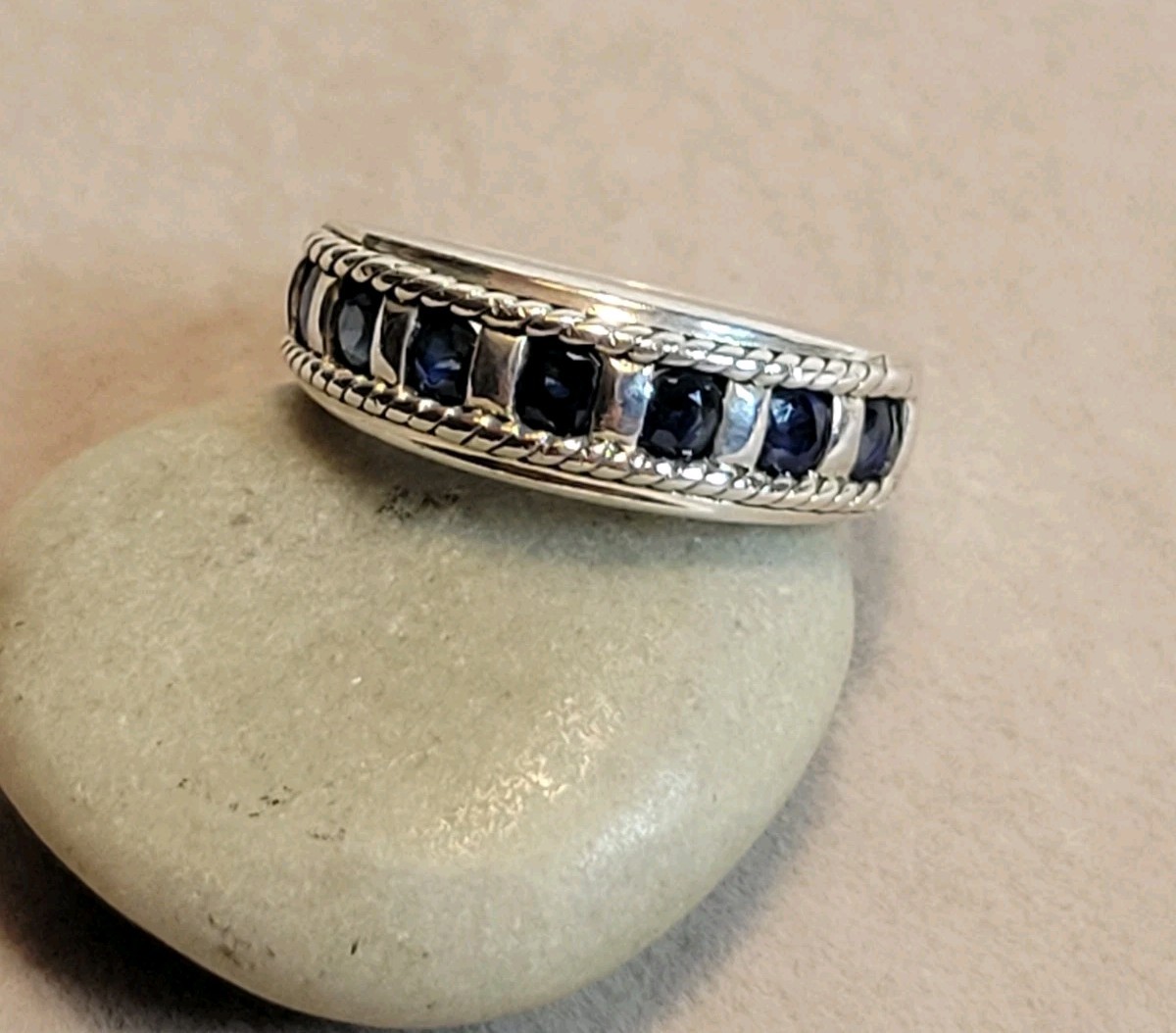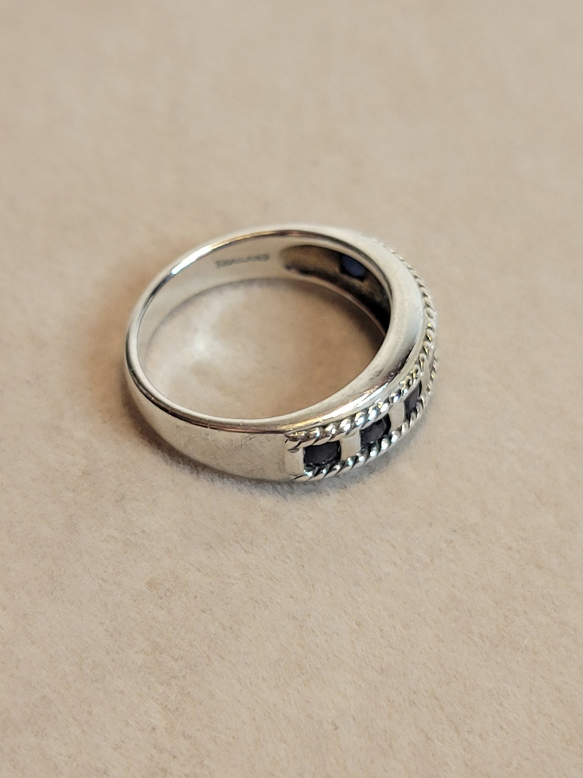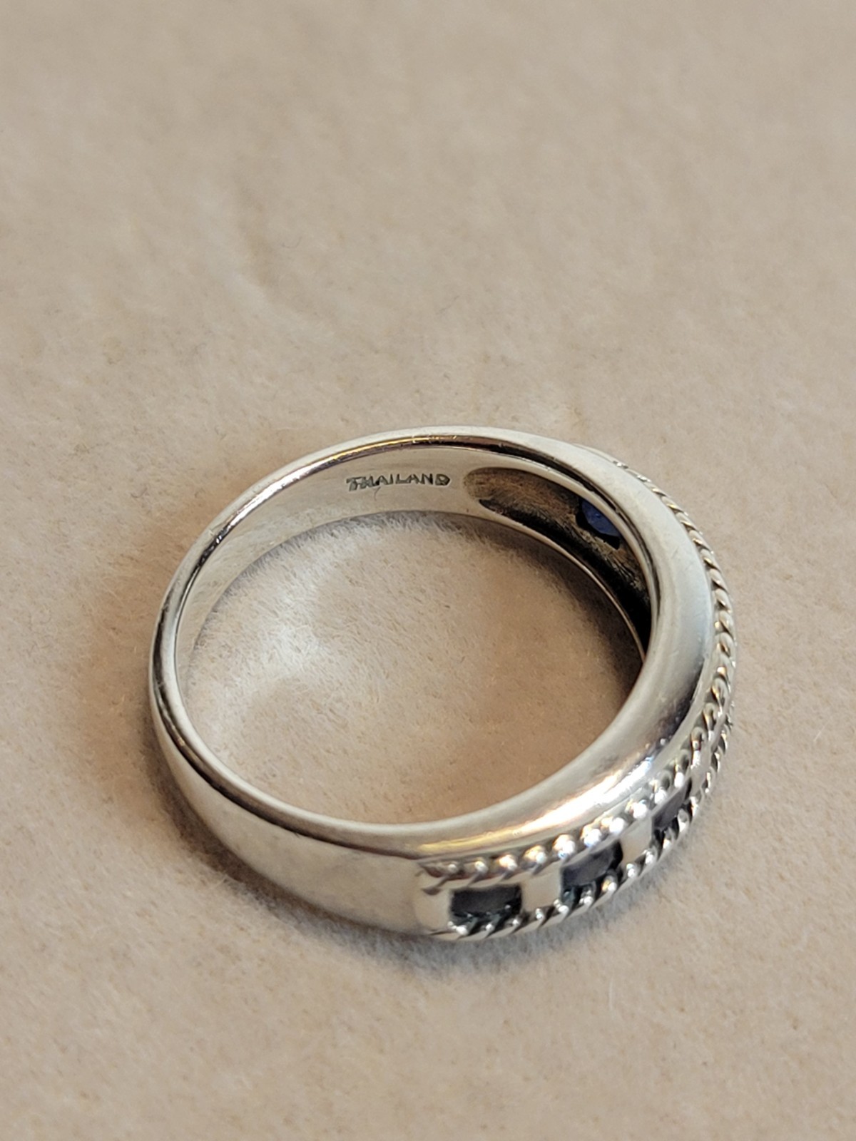 как выглядит Vtg 925 Sterling Silver Deep Blue Sapphire Gemstone Size 6.75 Ring Multi Stone фото