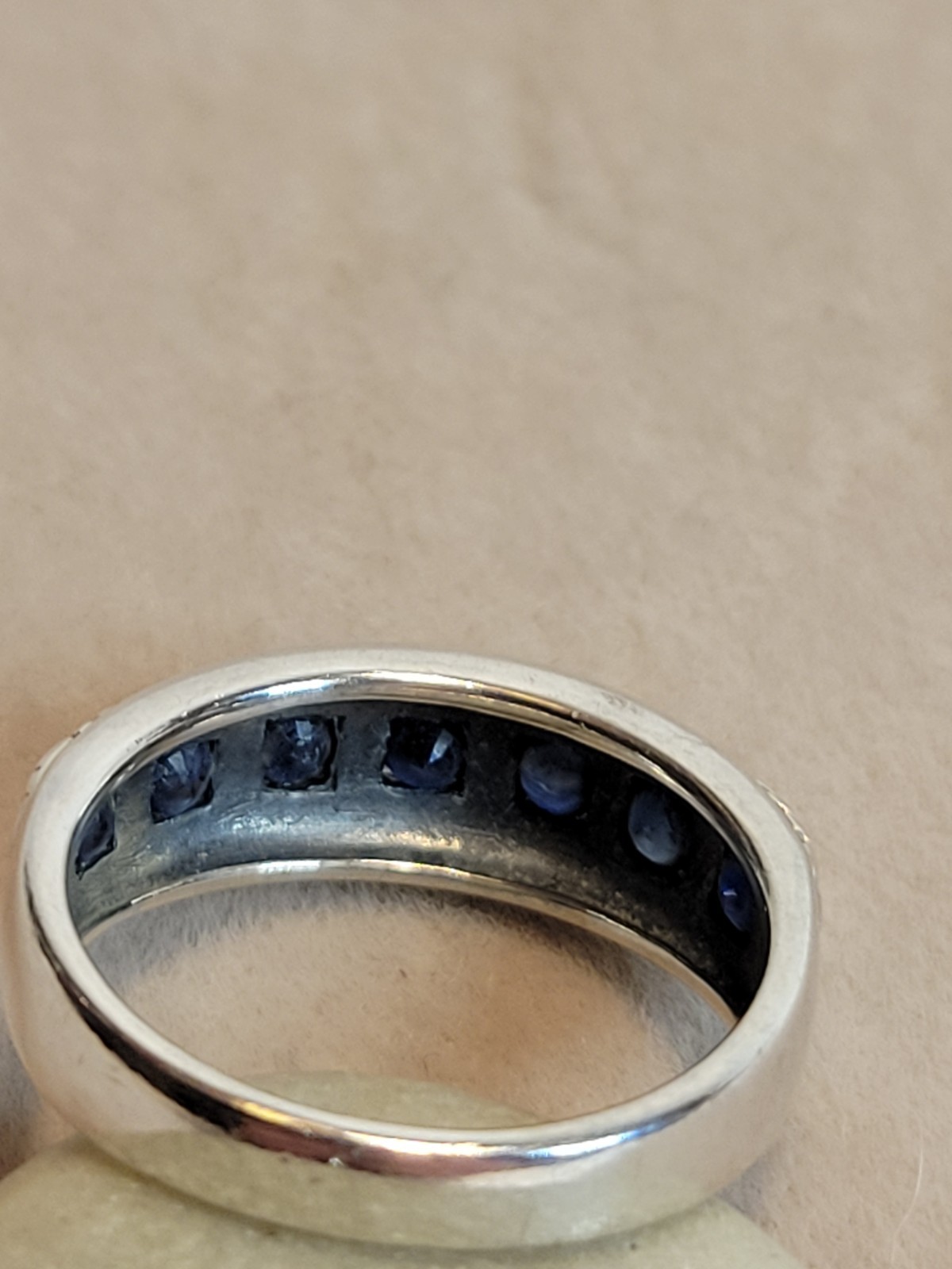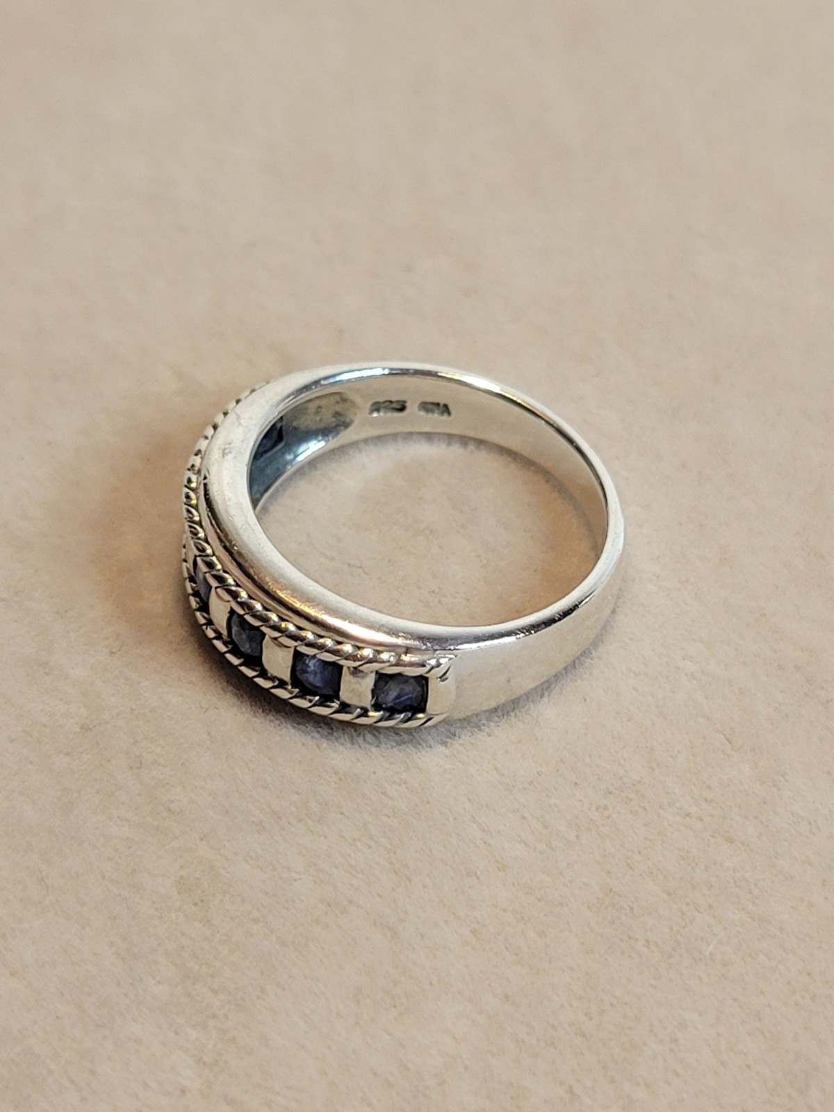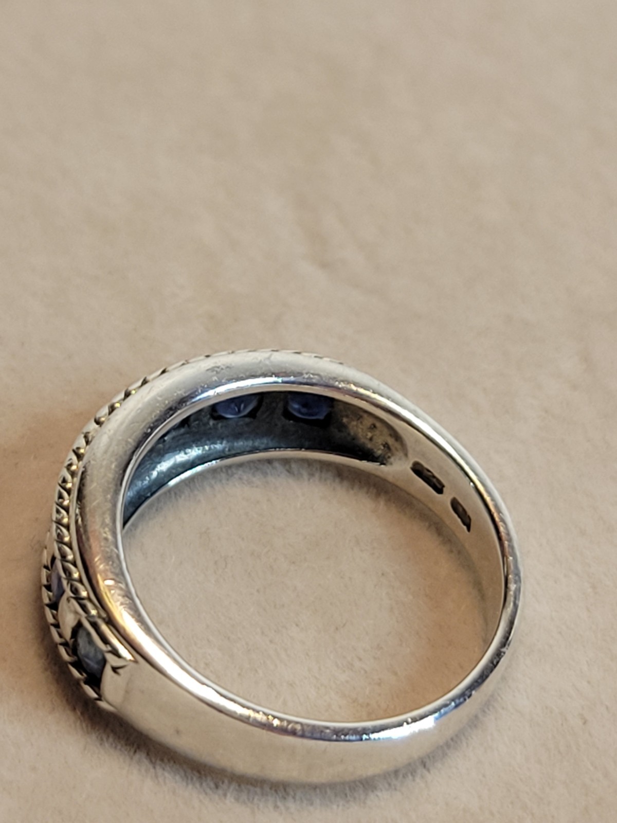 как выглядит Vtg 925 Sterling Silver Deep Blue Sapphire Gemstone Size 6.75 Ring Multi Stone фото