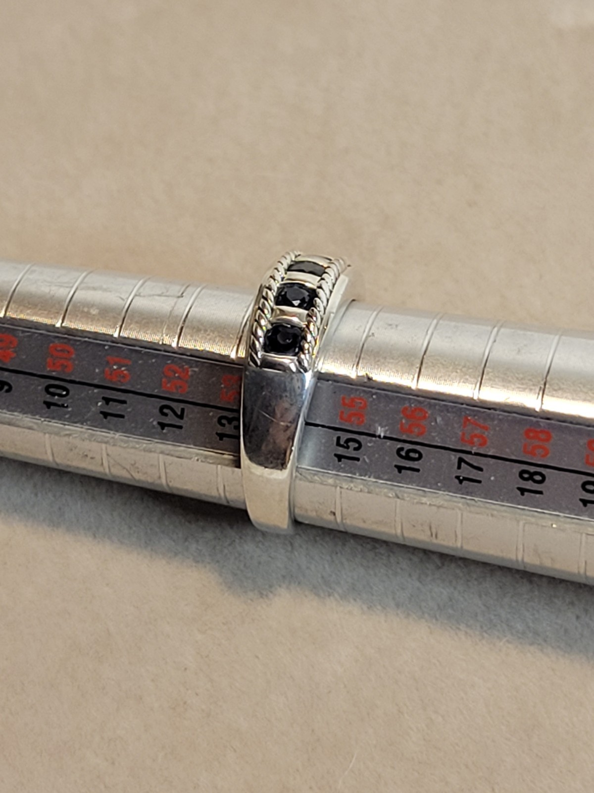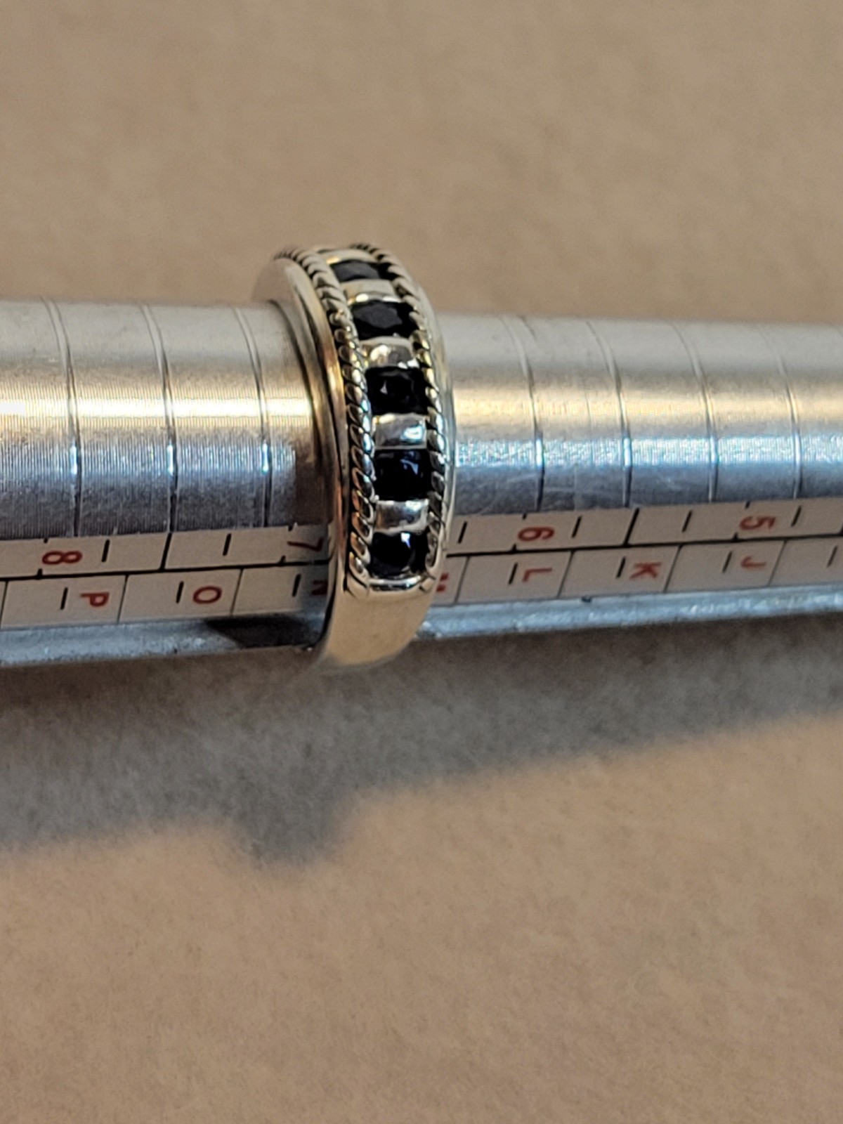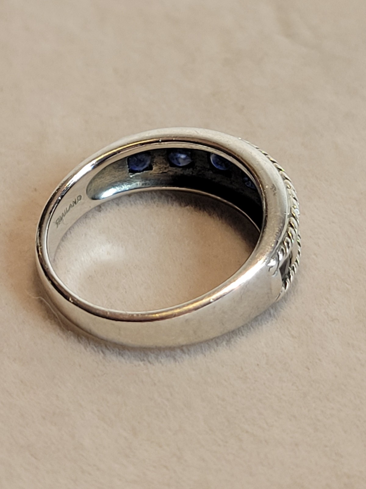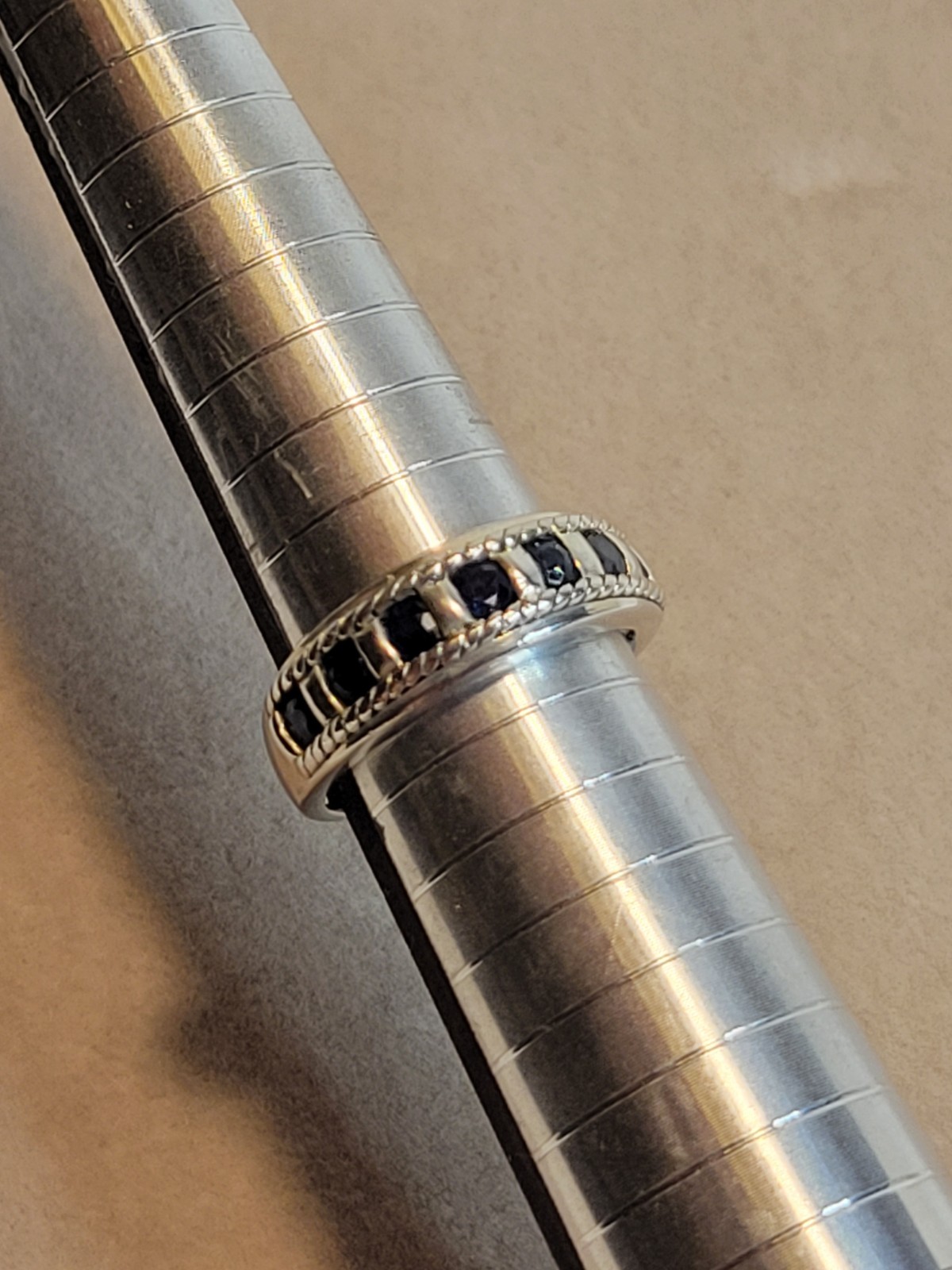 как выглядит Vtg 925 Sterling Silver Deep Blue Sapphire Gemstone Size 6.75 Ring Multi Stone фото