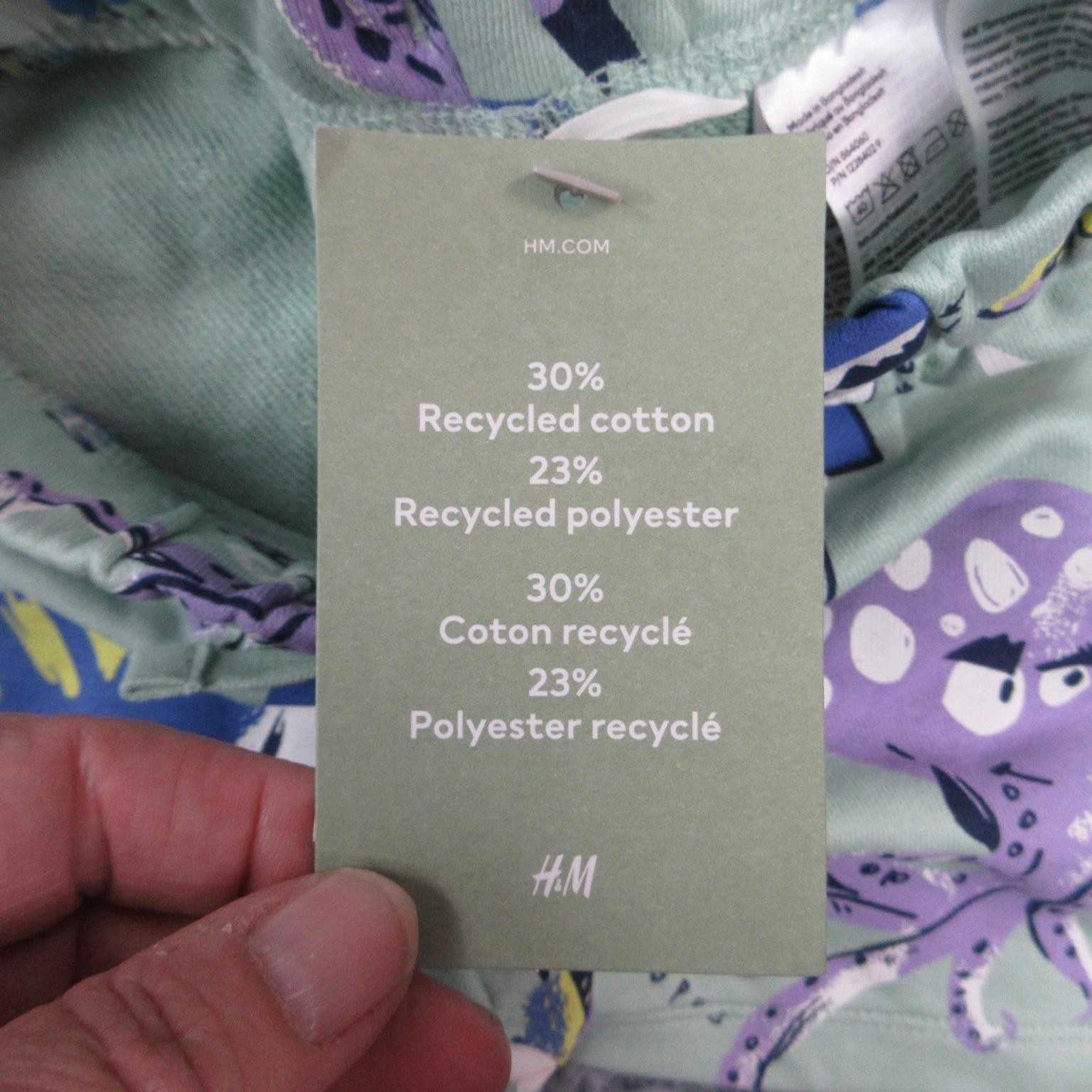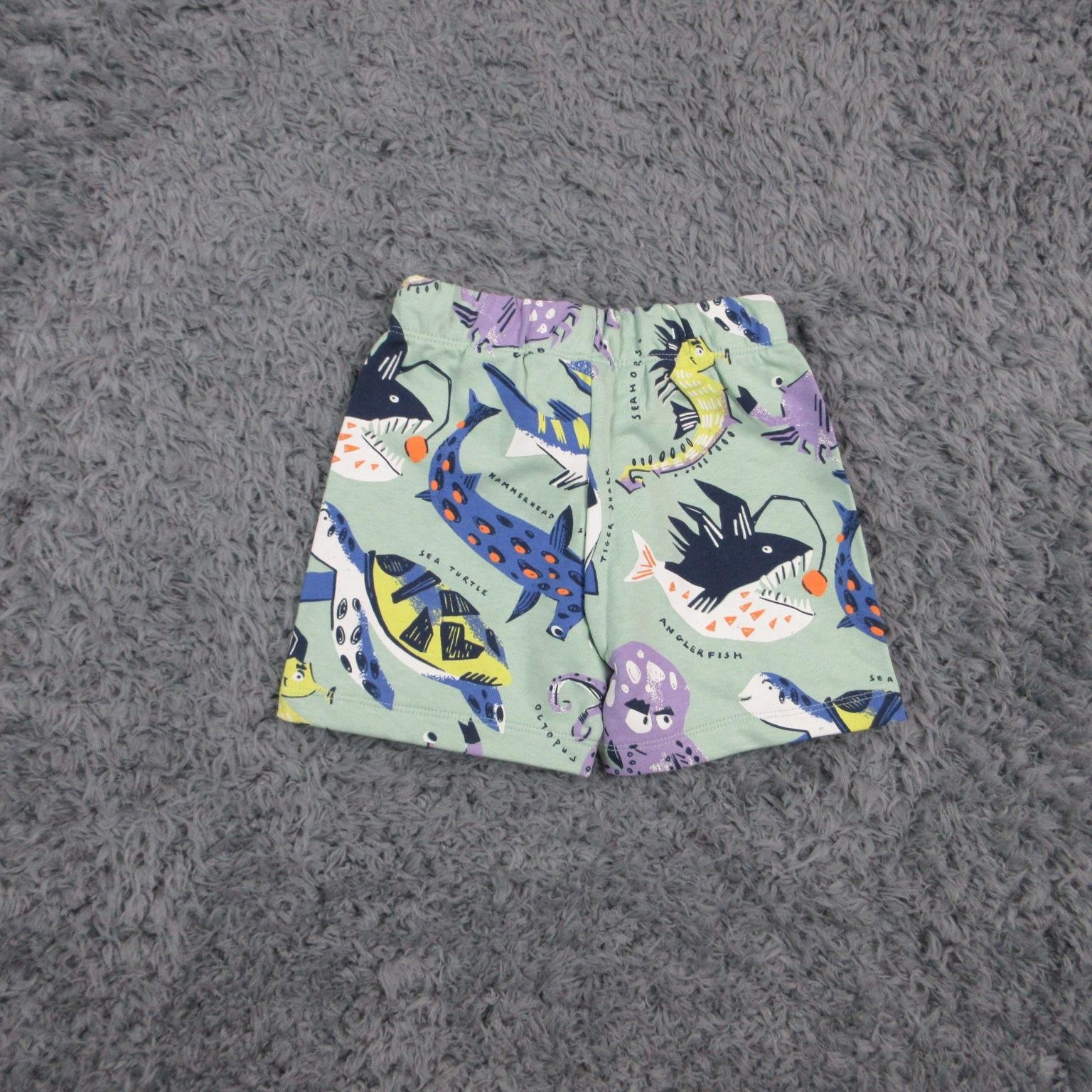 H M Shorts Kids 2XS 3T Green Sea Creature Shark Octopus Sweat Jersey 18x3.5 NWT