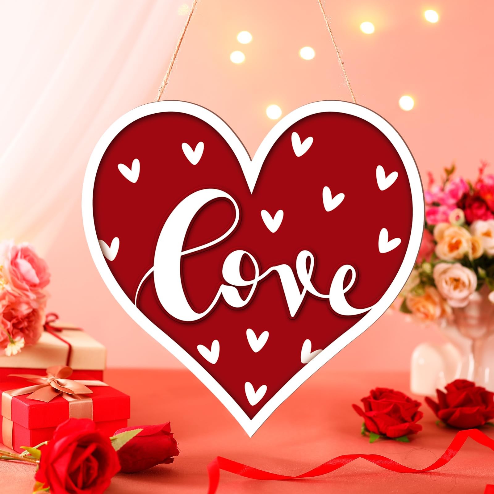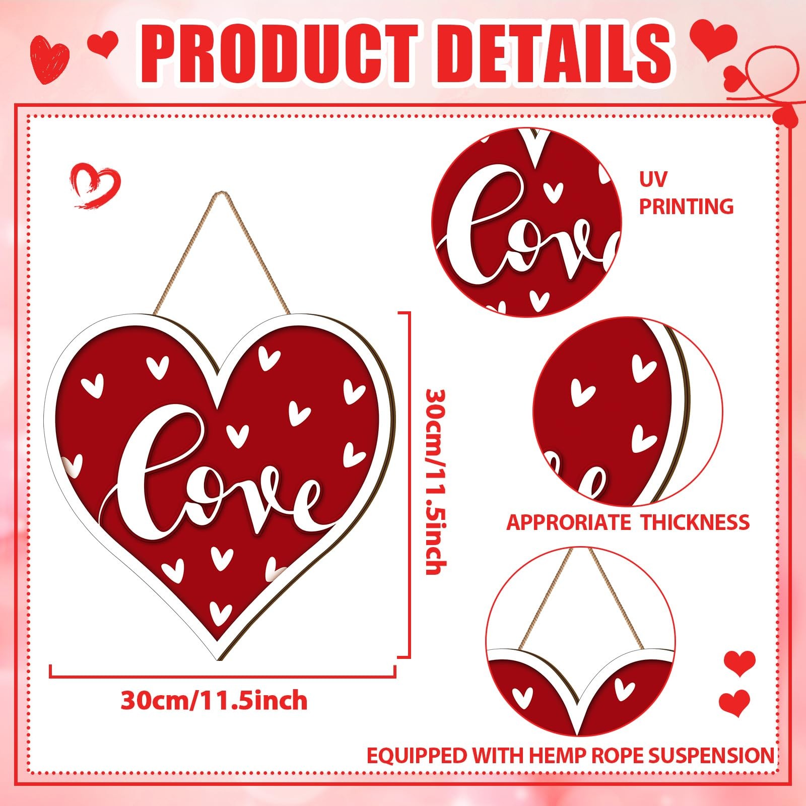 Welcome Valentines Day Wooden Door Hanging Sign Decor Heart Shaped Farmhouse ...