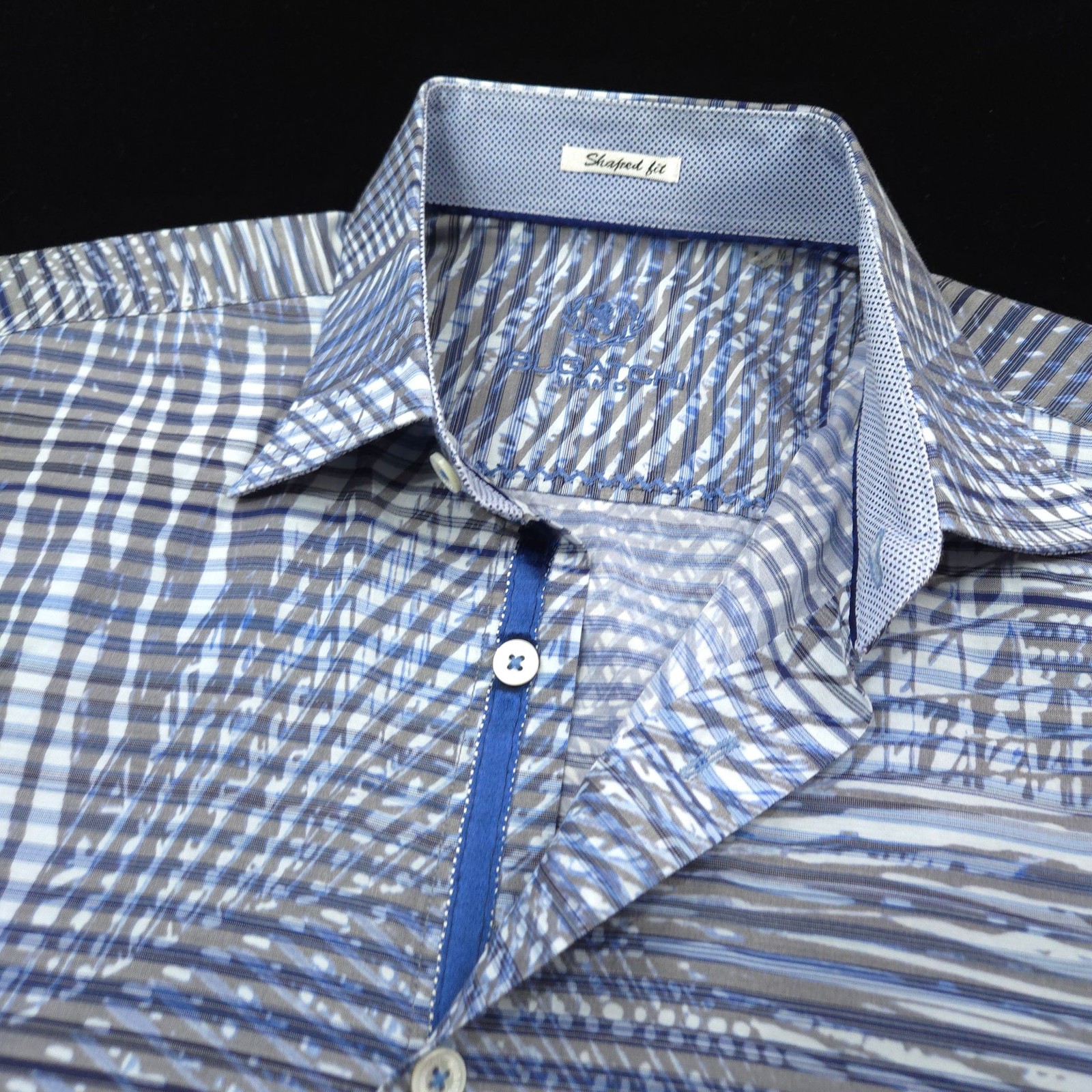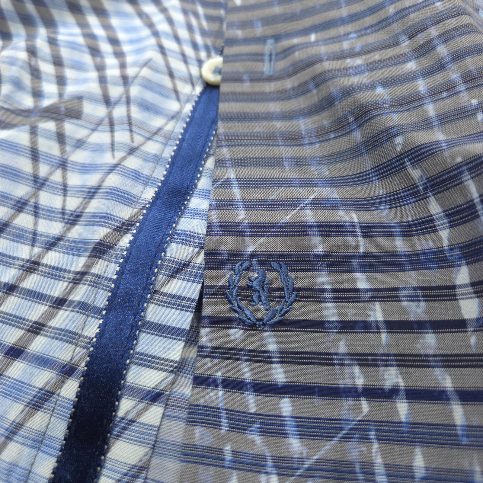 как выглядит Bugatchi Dress Shirt Mens M Shaped Fit Long Sleeve Blue Striped Embroidered фото