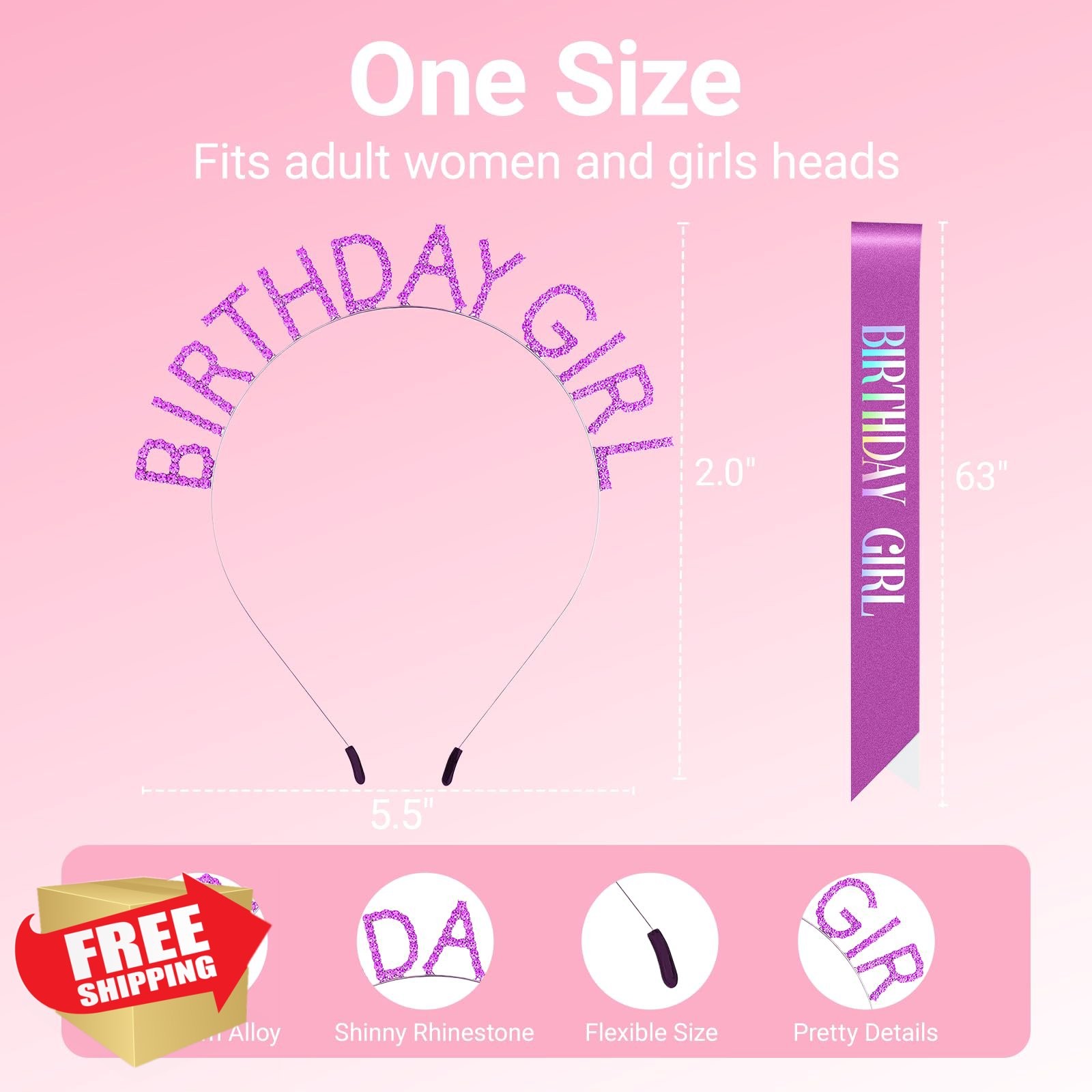 Papoopy Birthday Headband Crown Tiara for Women Sash