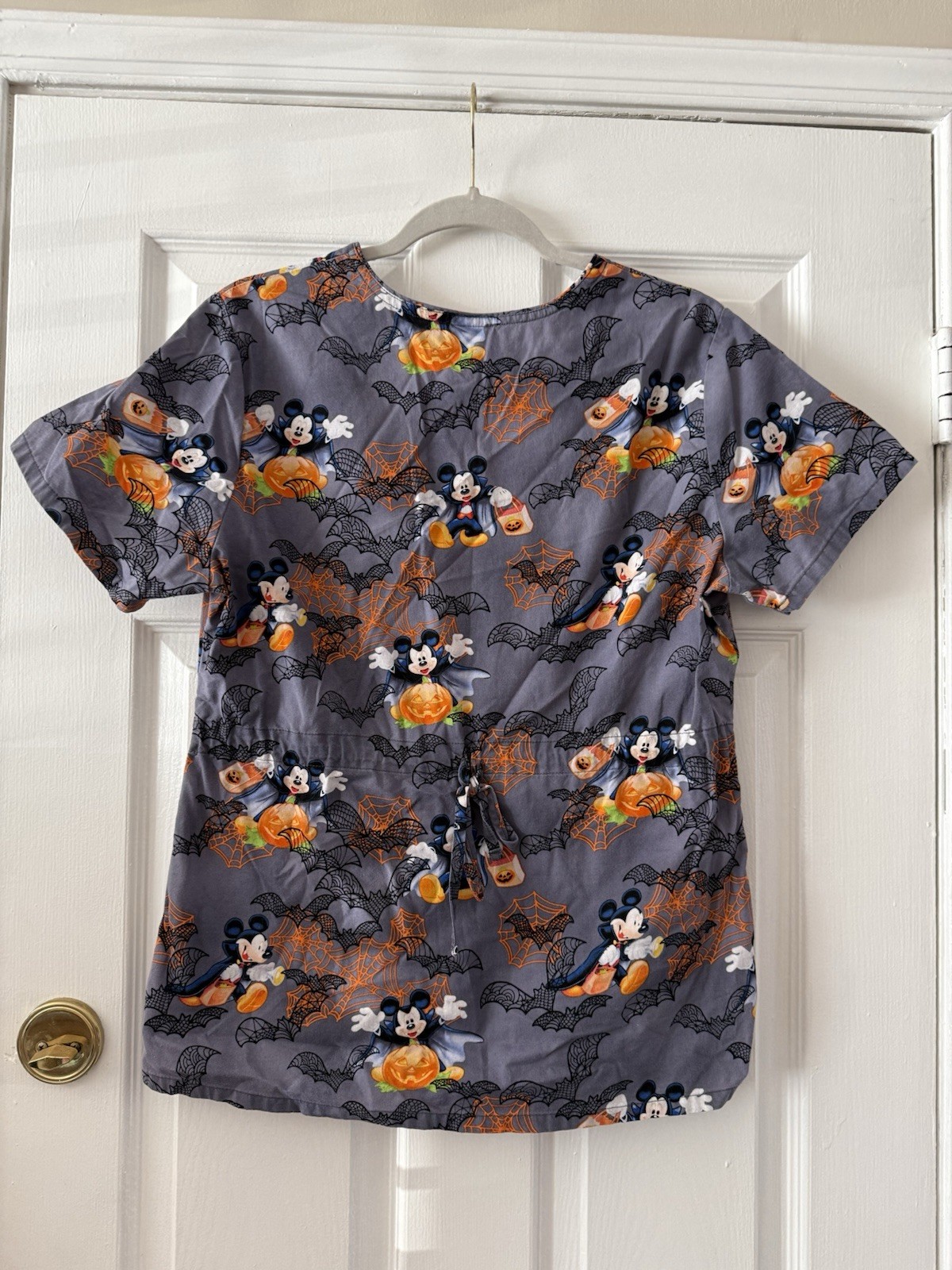 Disney Scrub Top Mickey Mouse Halloween Print Scubs Dracula Spooky Size Small