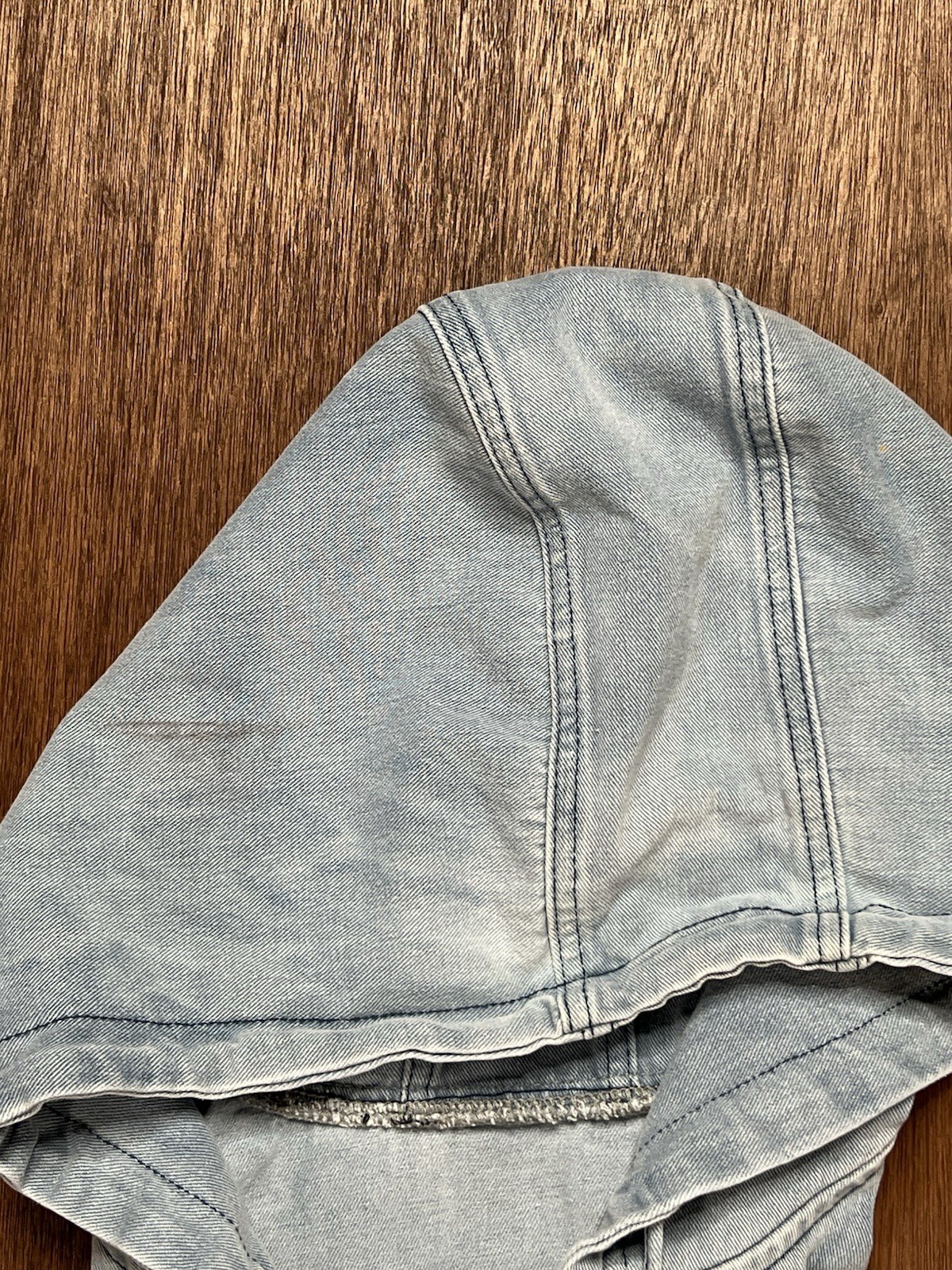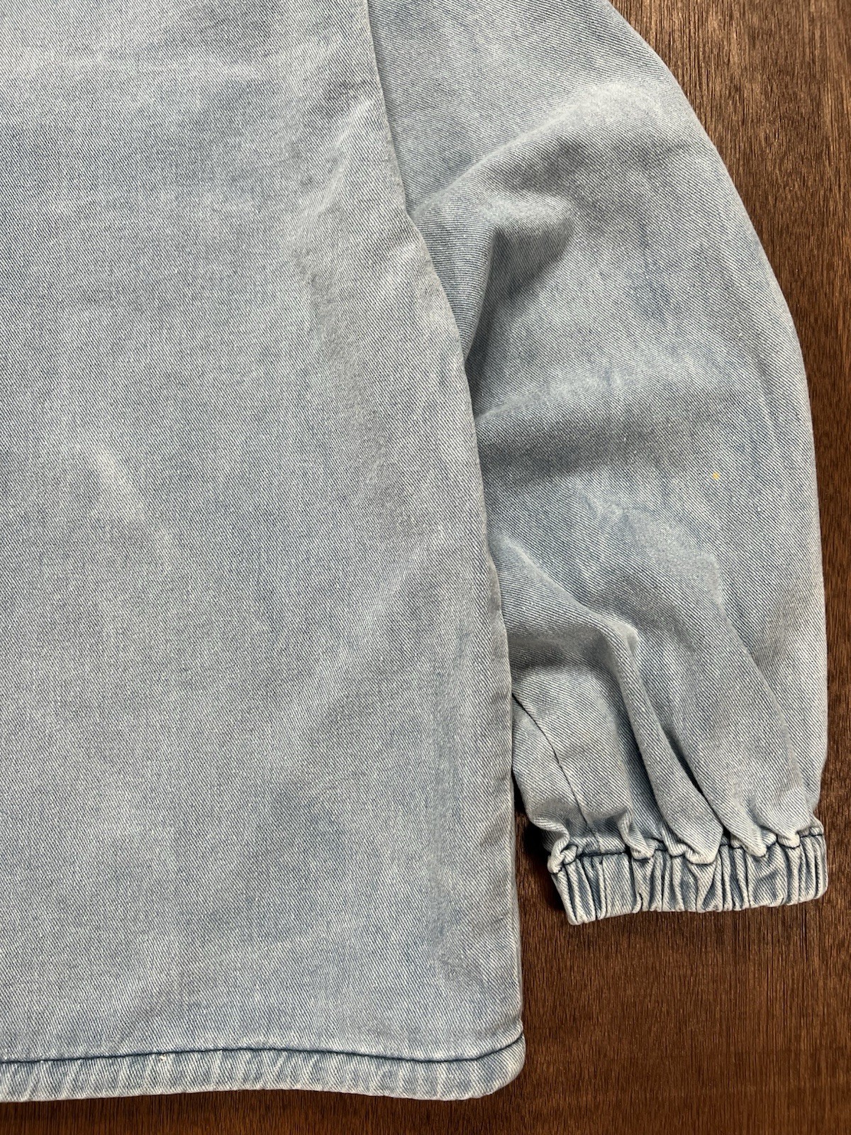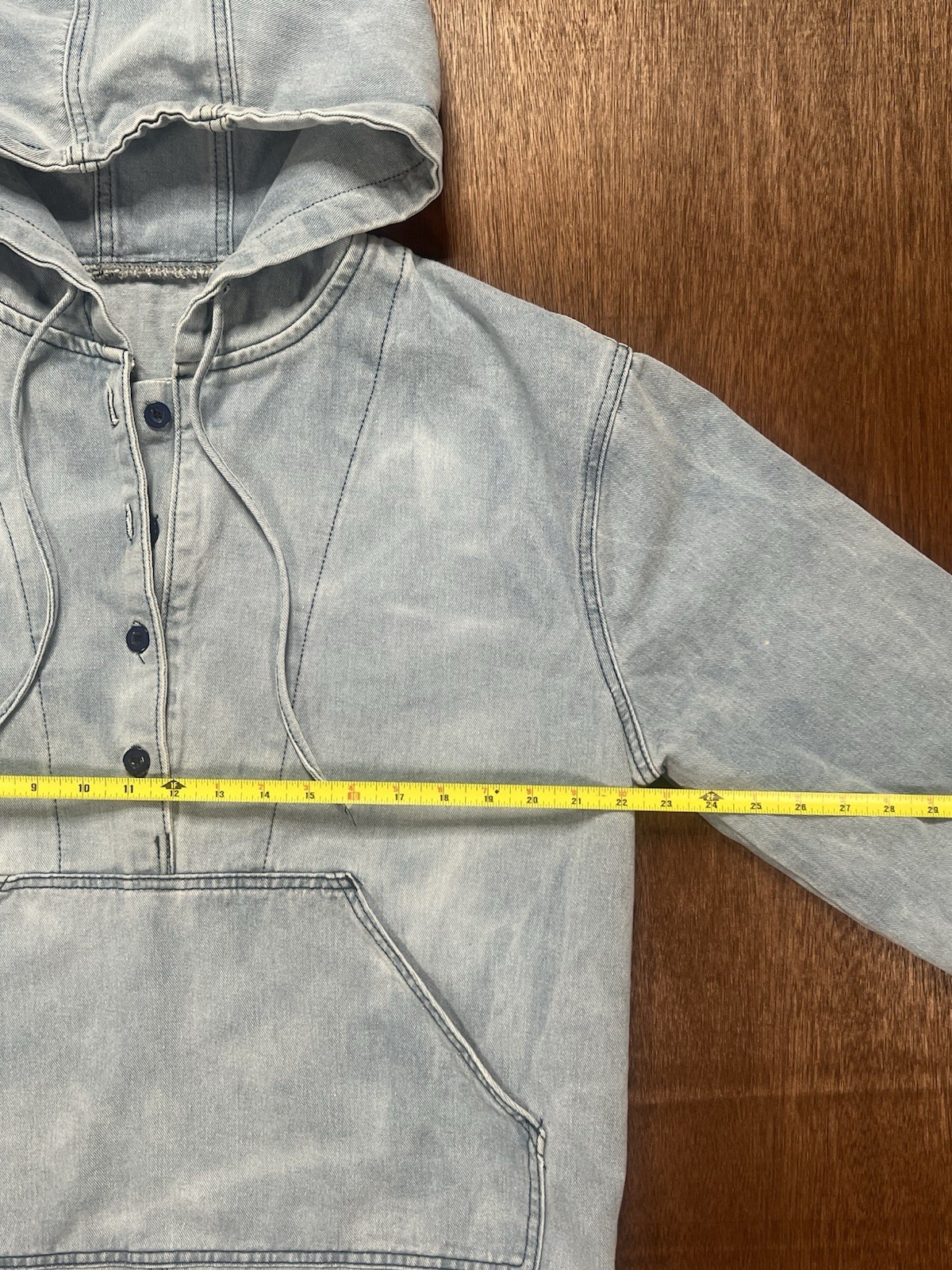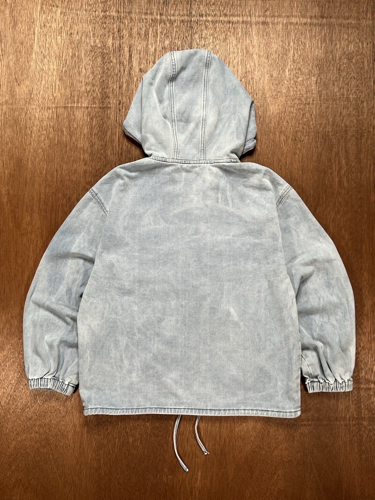 как выглядит Bleach-washed Blue Denim Pullover Cottagecore Drawstring Hoodie фото