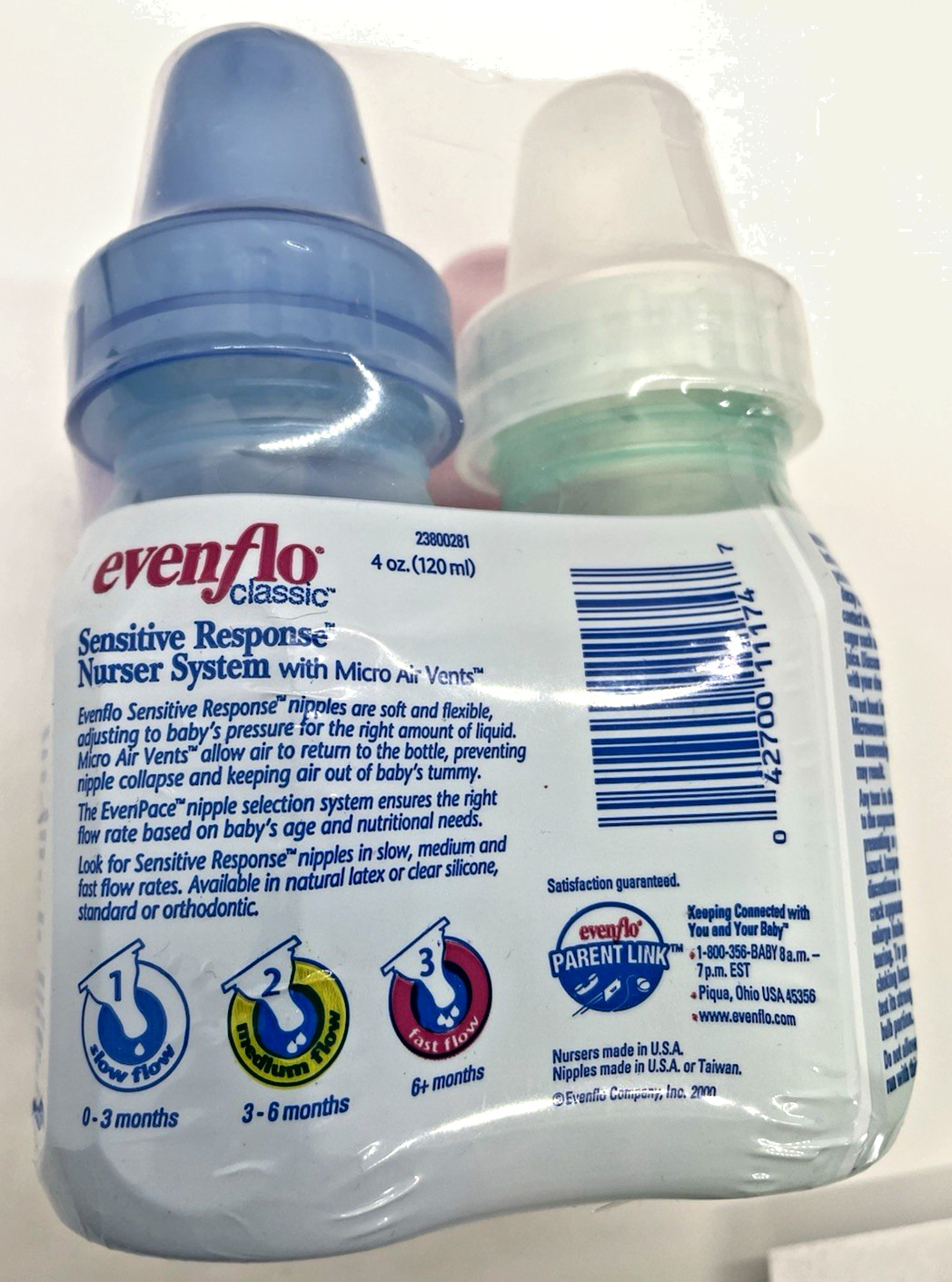 как выглядит Evenflo Classic Baby Bottles 4 pack Multicolor Sensitive 4oz VTG Vintage 2000 фото