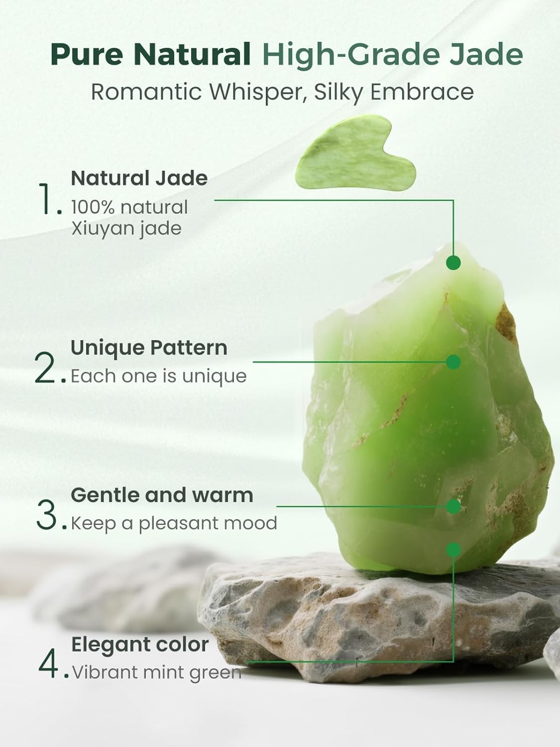 Gua Sha Facial Tools, Natural Jade Stone Guasha Tool for Face Acupuncture Therap