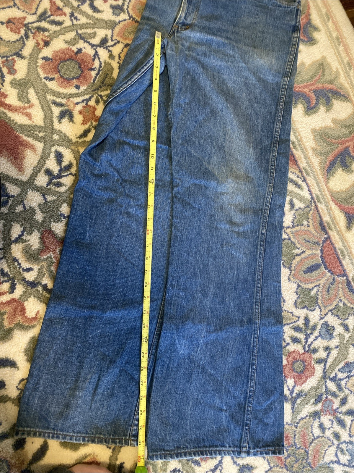 как выглядит Vintage 1970 s Flare Bell Bottom Denim Jeans 40x32 Light Wash Sears jean joint фото